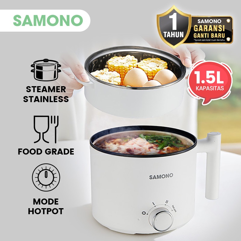 Panci Listrik Kukusan 1.5 Liter Stainless Steamer 150 Watt Dengan Kukusan Tutup Kaca SW-DG04S