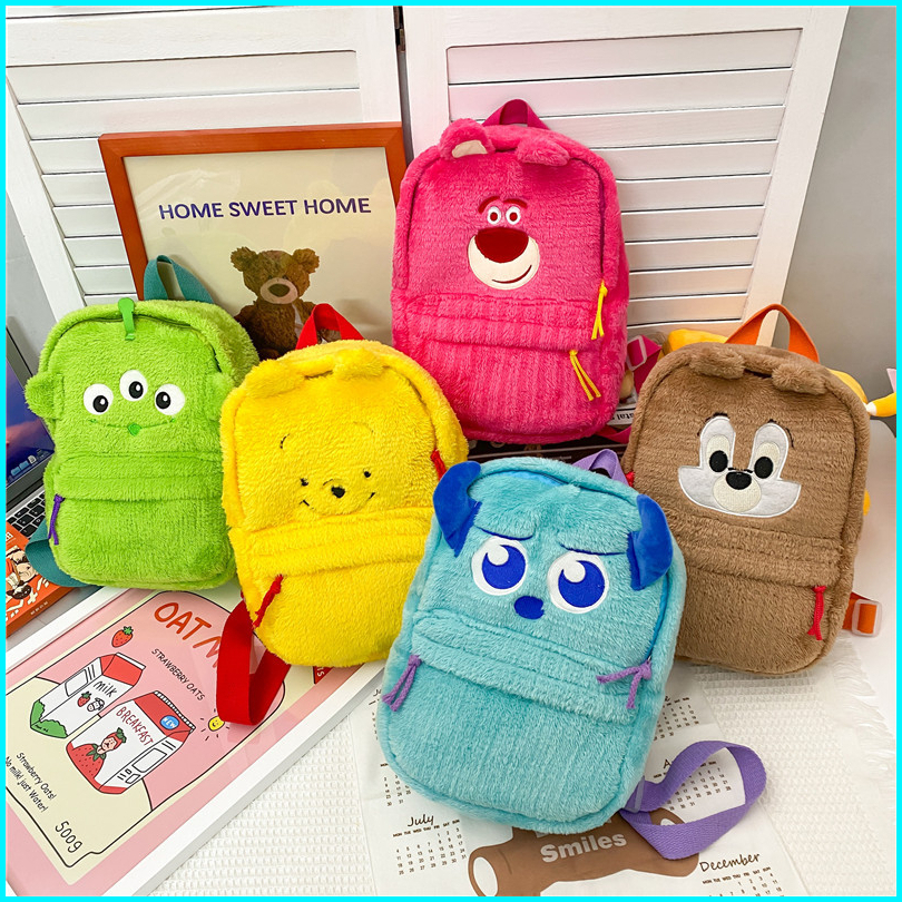 Tas Ransel Disney Plushie Karakter Lotso Monster Inc Pooh Chipmunk Backpack Bulu Lucu Wanita Remaja Tas Ransel Boneka Ch