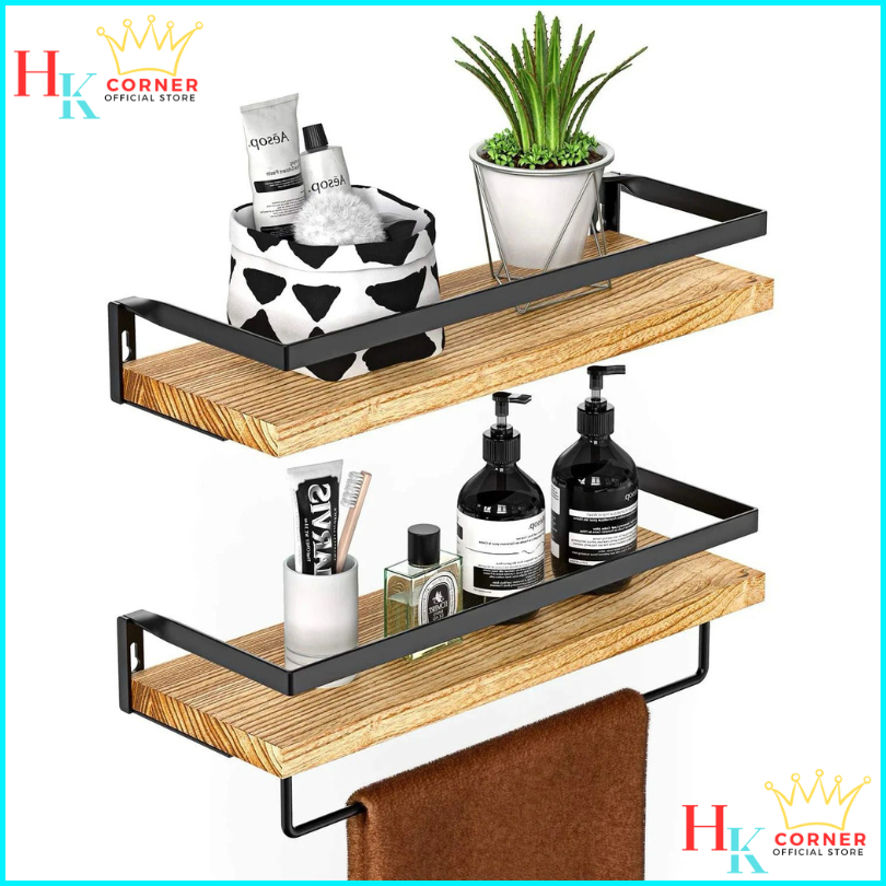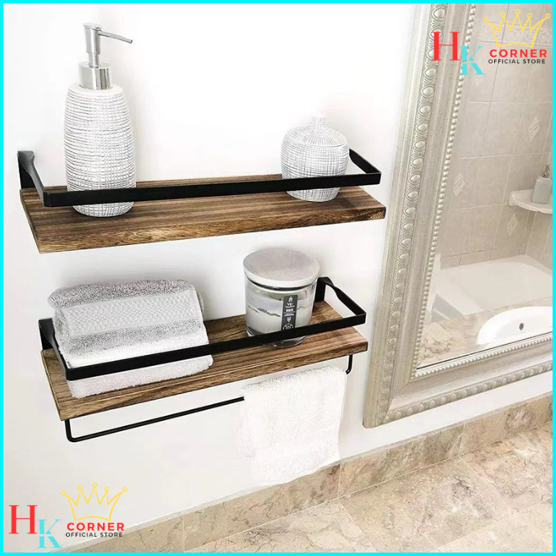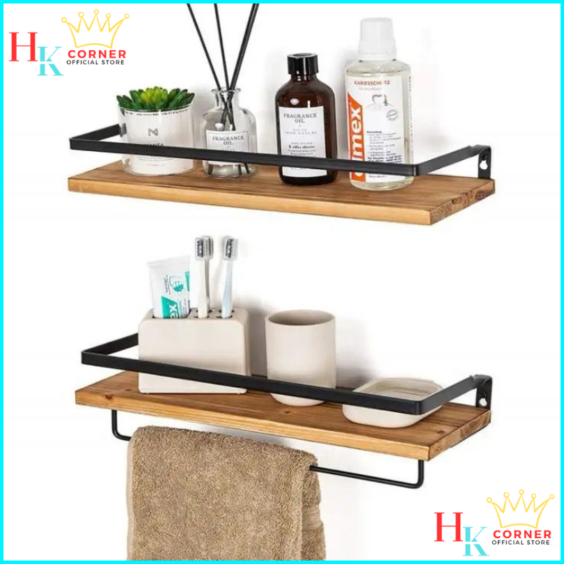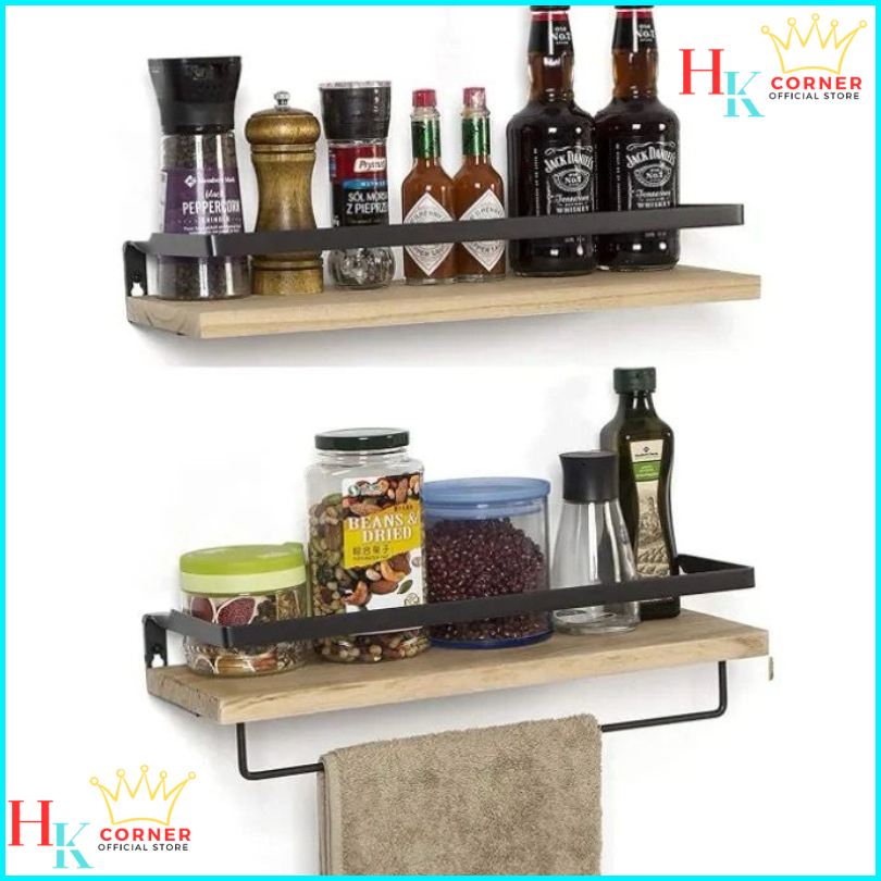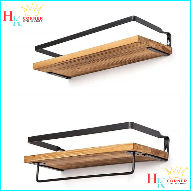 Hk Rak Gantung Minimalis Rak Dinding Dapur Kamar Mandi Rak Kayu Besi Serbaguna