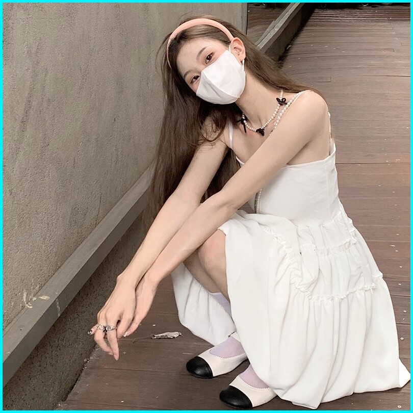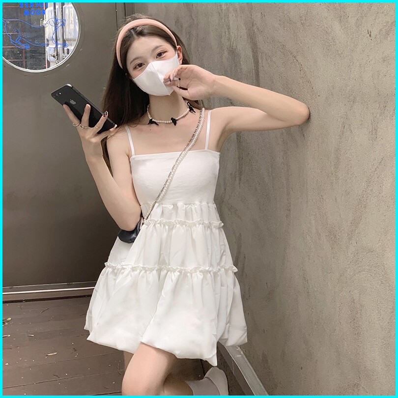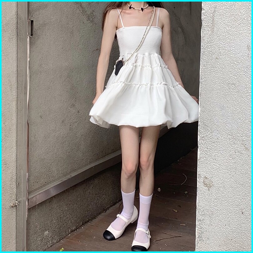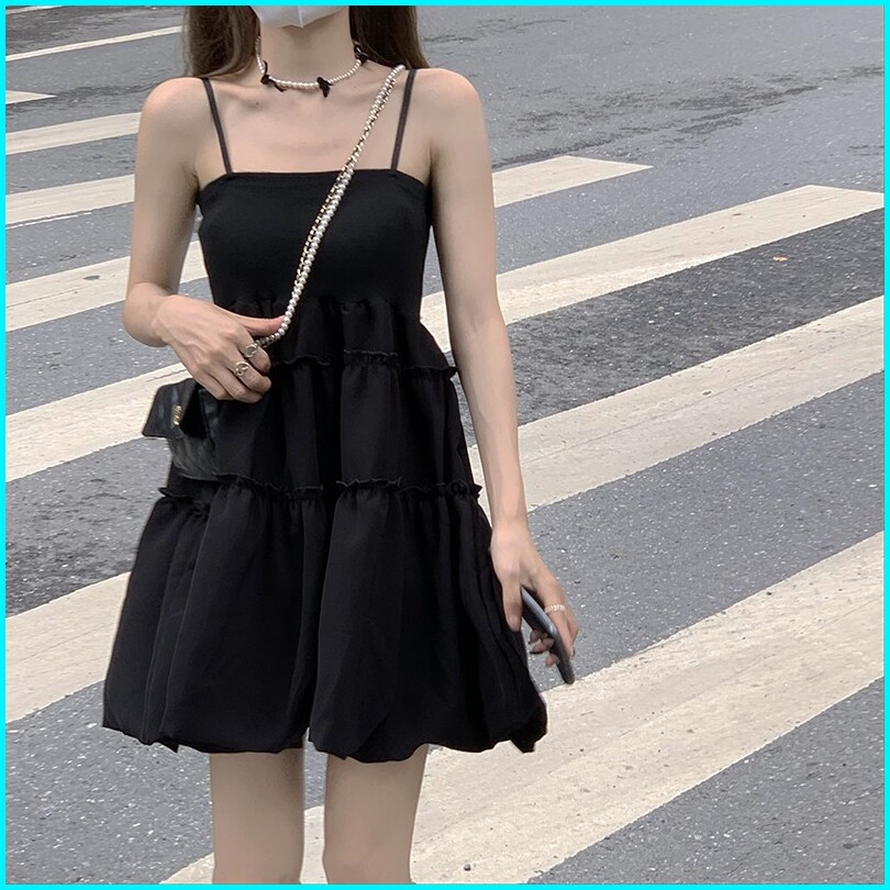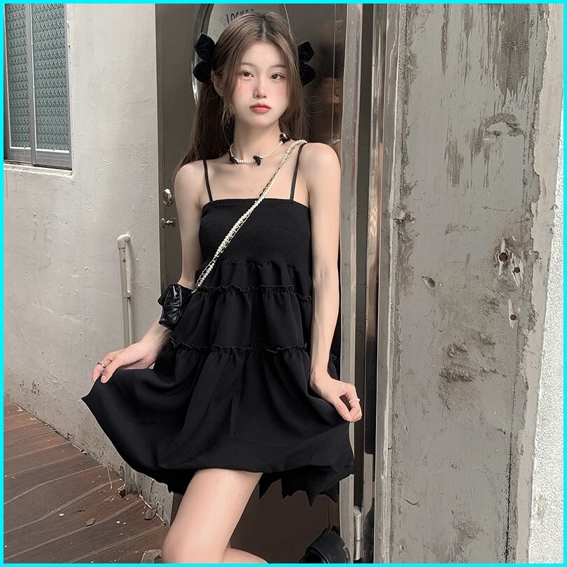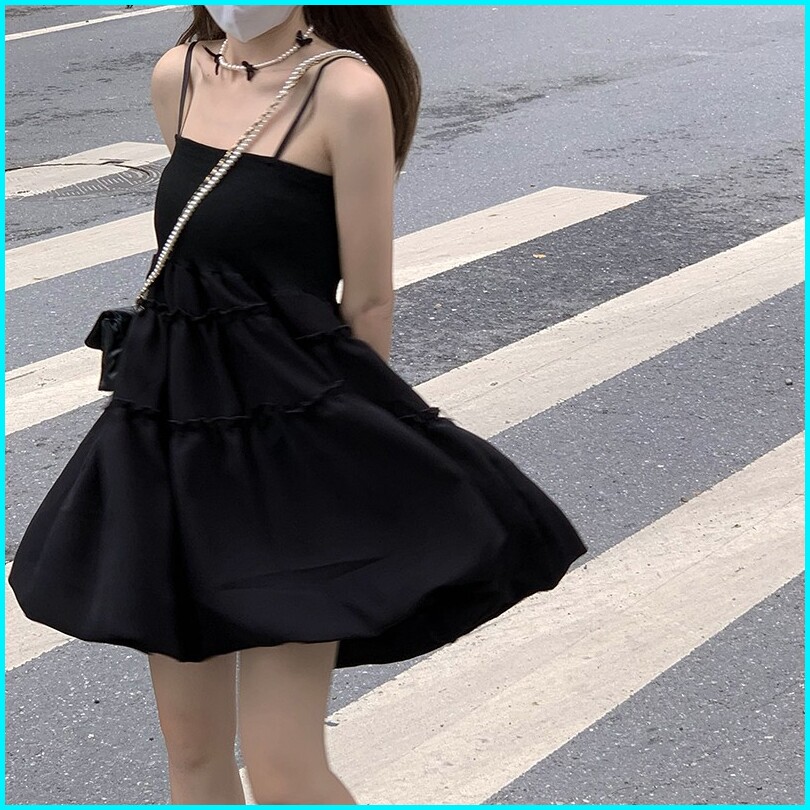 Desain Selempang Puffy Baru Rasa Temperamen Gaun Hitam 2 Warna