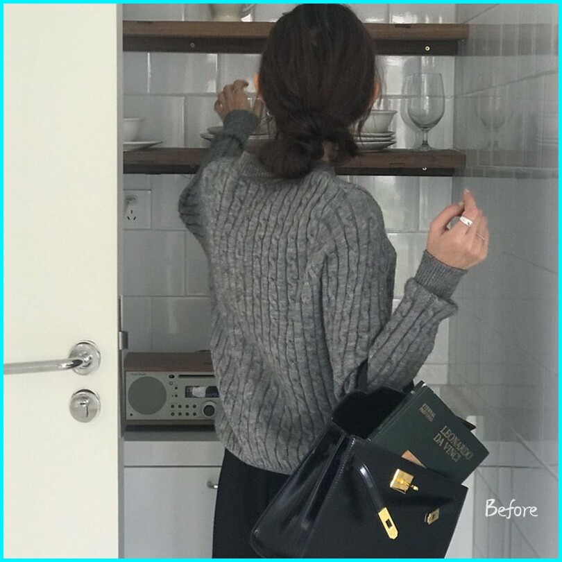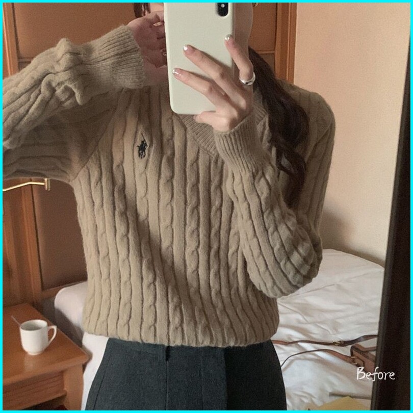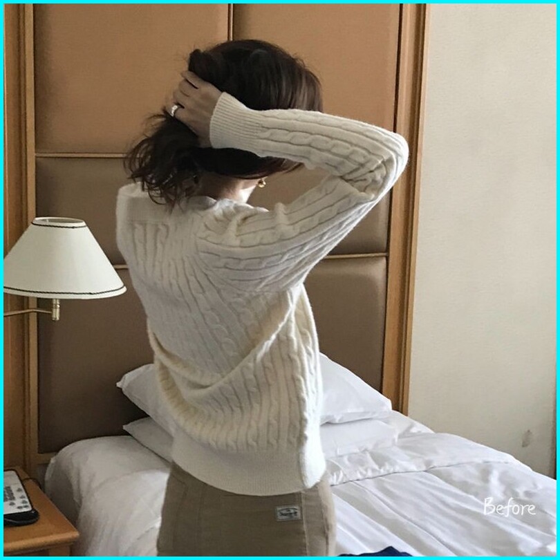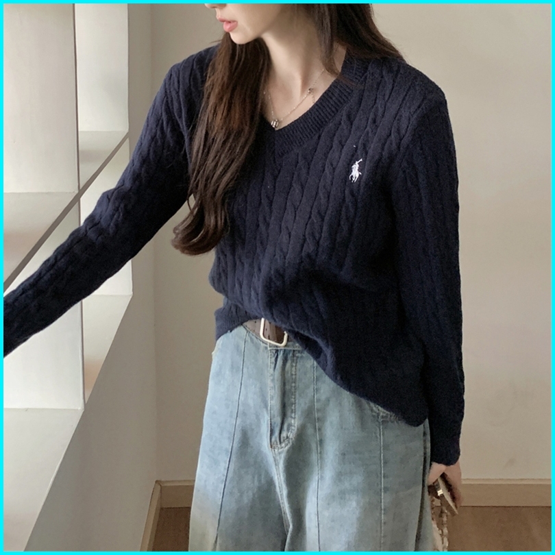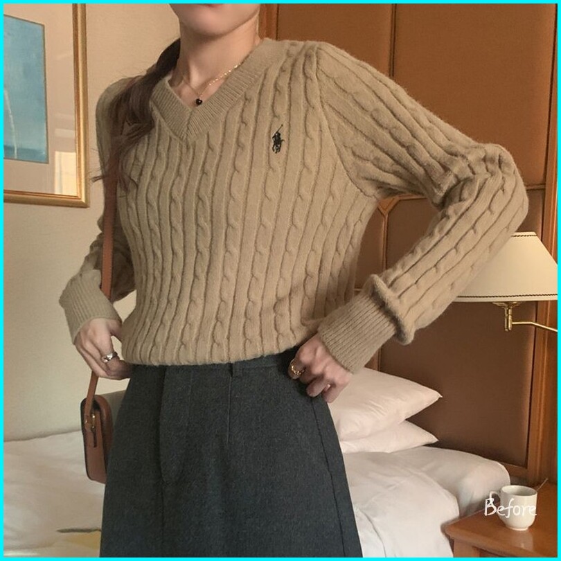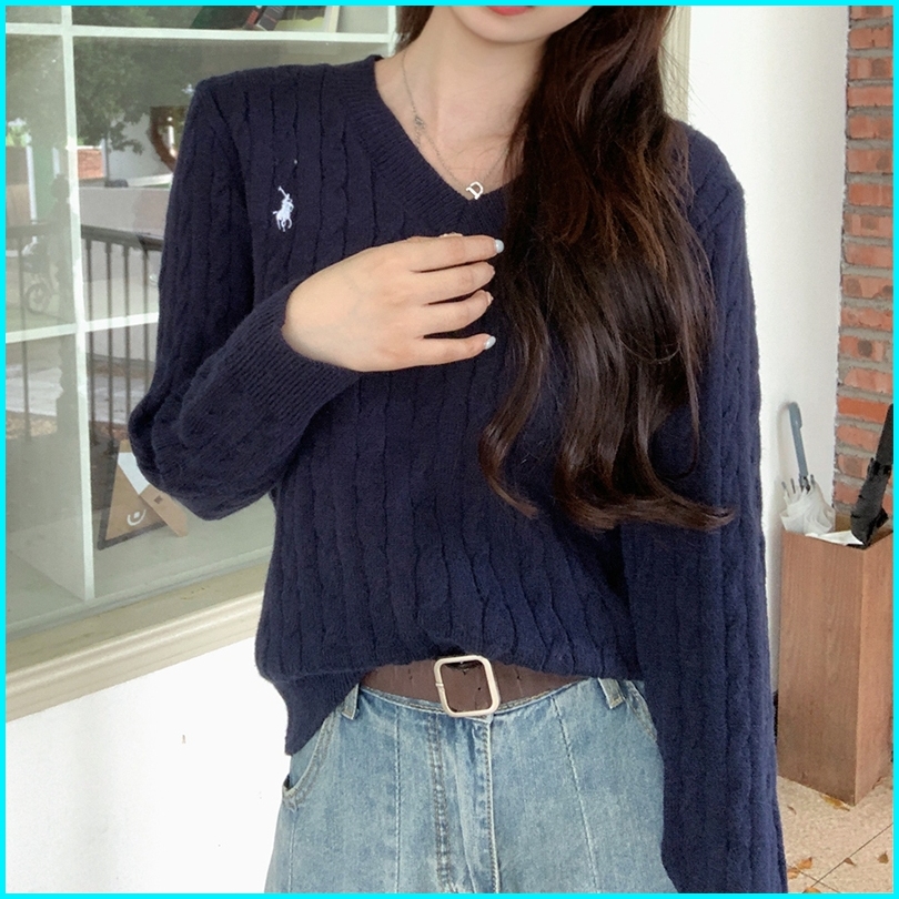 Korean Knitwear Sweater Lucu V-neck Sweater Crop Polos Switer Rajut Wanita Lengan Panjang Bf
