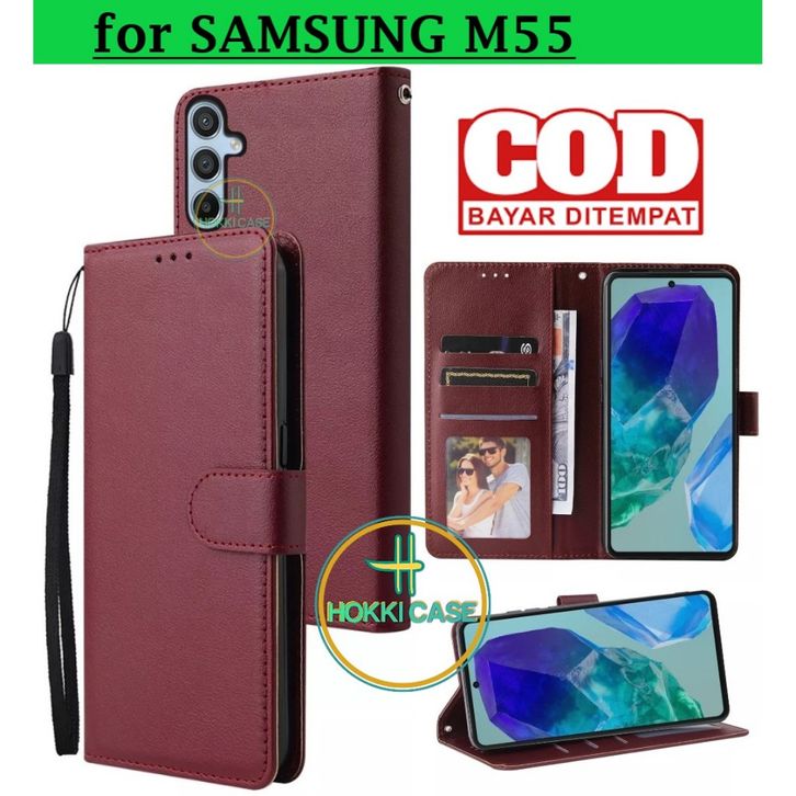 (TERMURAH)SAMSUNG M55 FLIP CASE - FLIP UNTUK SAMSUNG M55 / FLIP WALLET KULIT UNTUK SAMSUNG M55 / SARUNG DOMPET KULIT