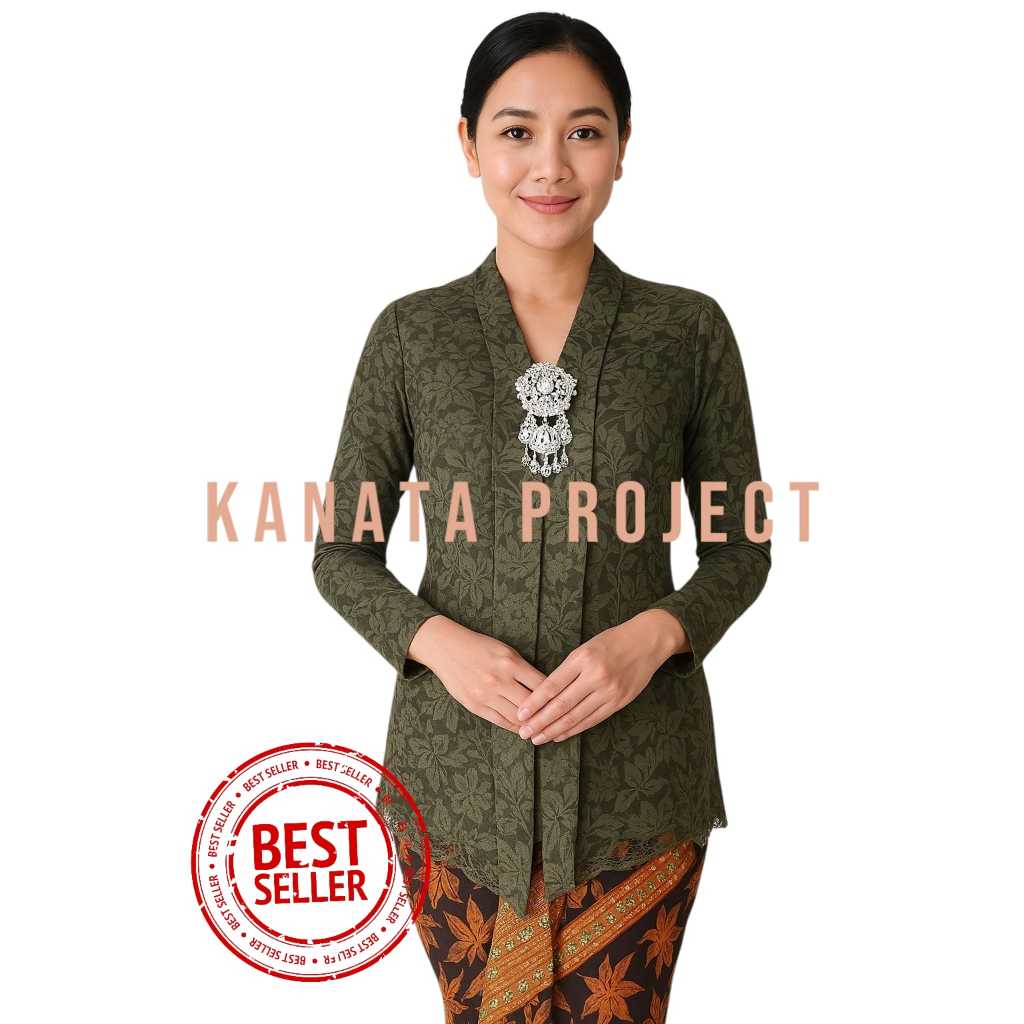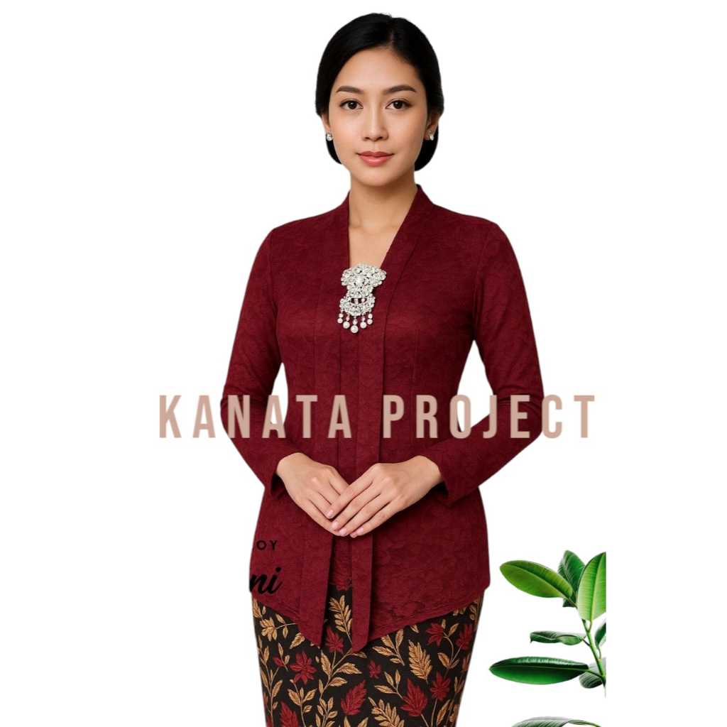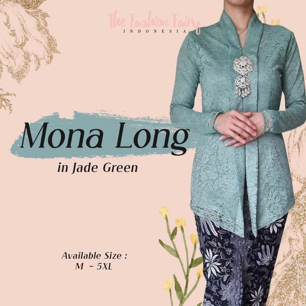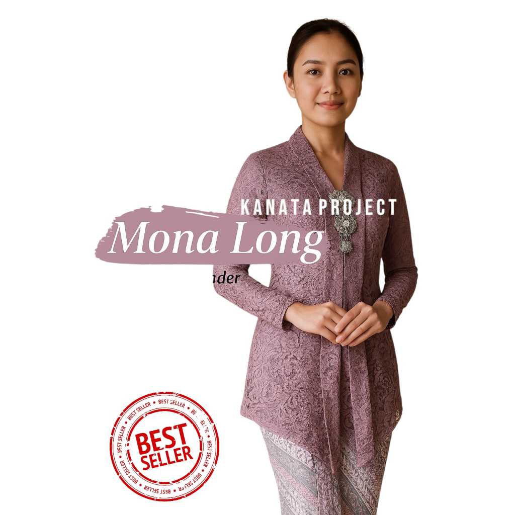 Set Kebaya Mona Long - Setelan Kebaya Kartini Modern - Kebaya Brokat Modern Bawahan Batik - Kebaya Acara Formal - Kondan