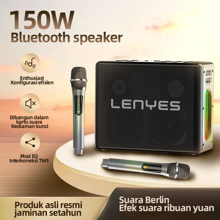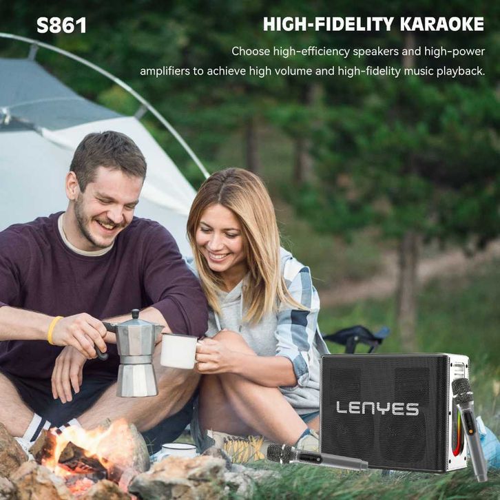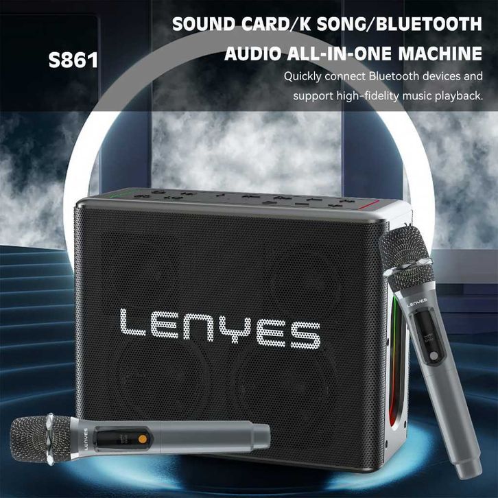 LENYES S861 150W KTV RGB LED Light Wireless Speaker + Microphone Karaoke Bluetooth 5.0 Portable High Power