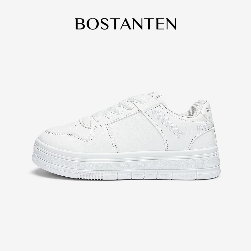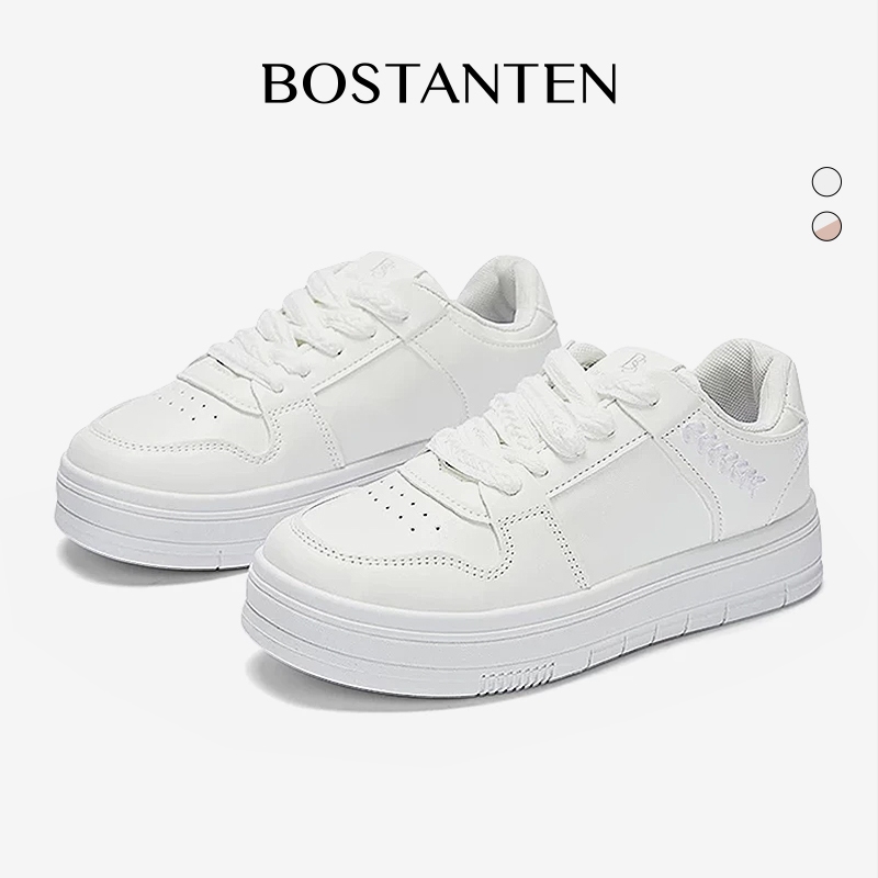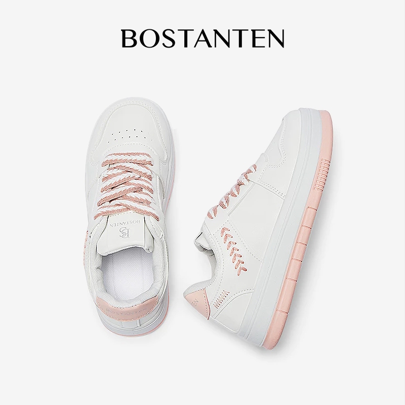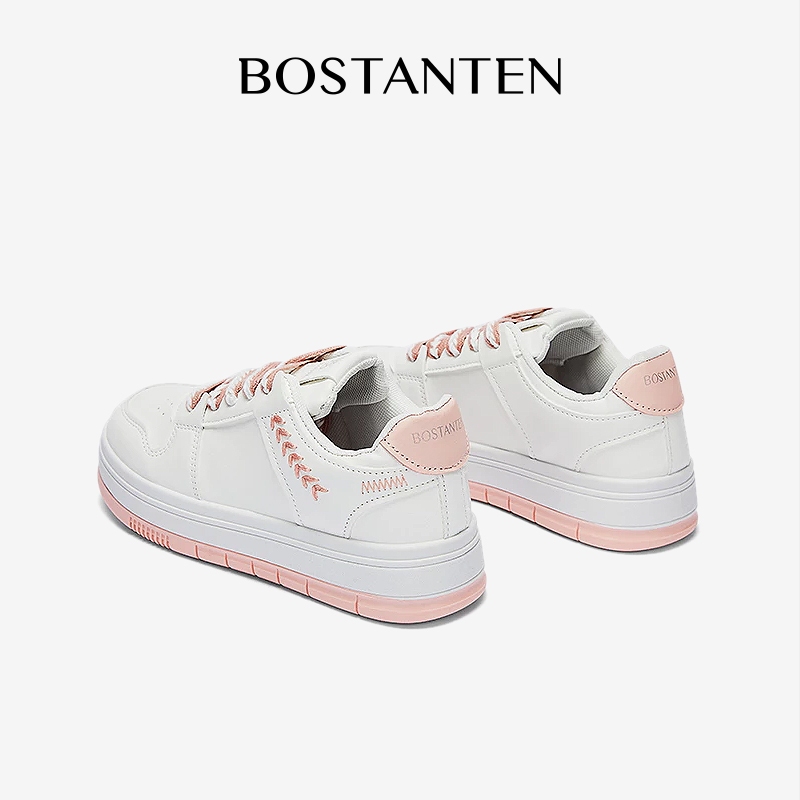 BOSTANTEN Sepatu Sneakers Wanita Warna Putih Shoes Kasual Gaya Korea Klasik Putih Pink 36-40