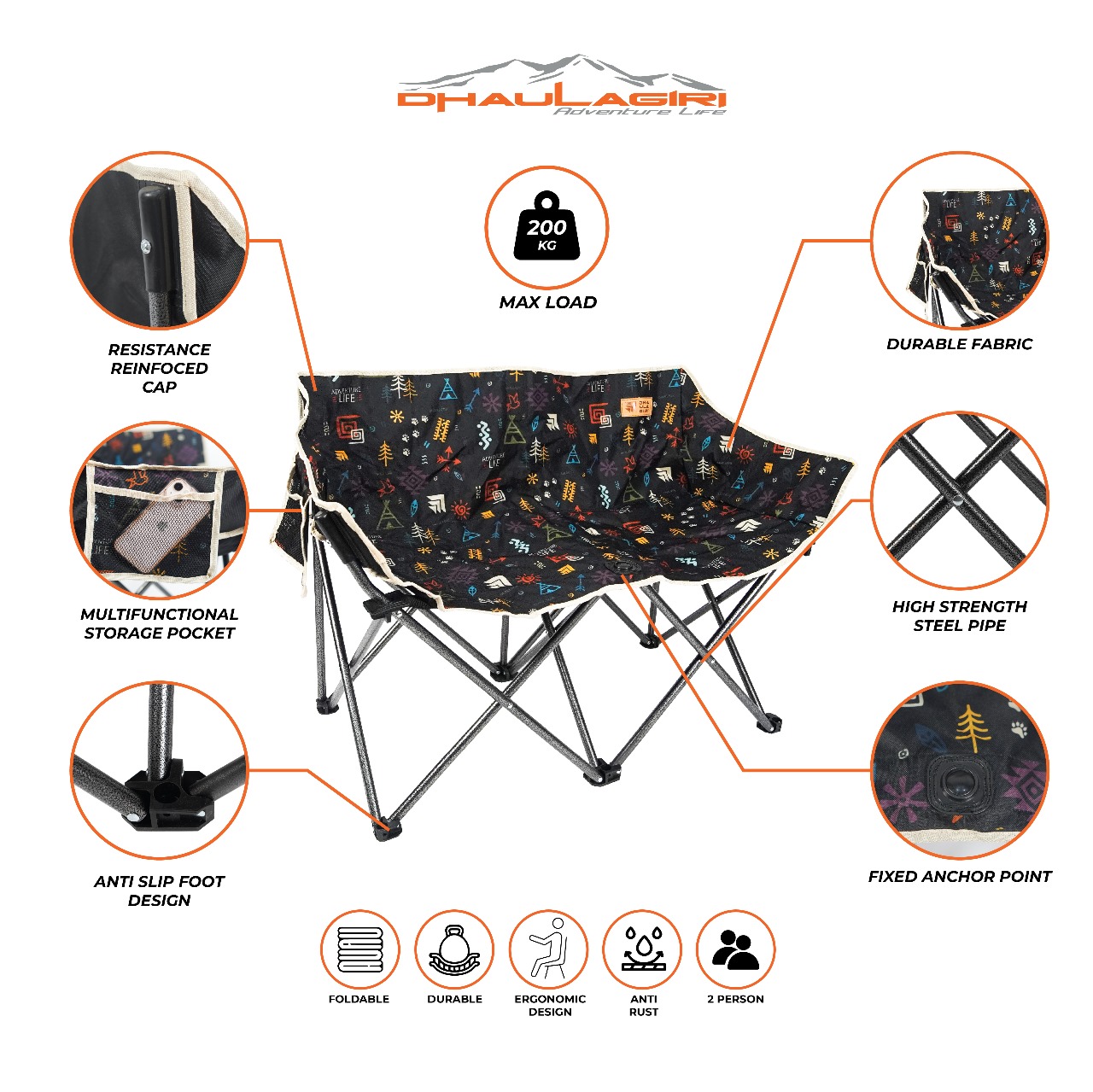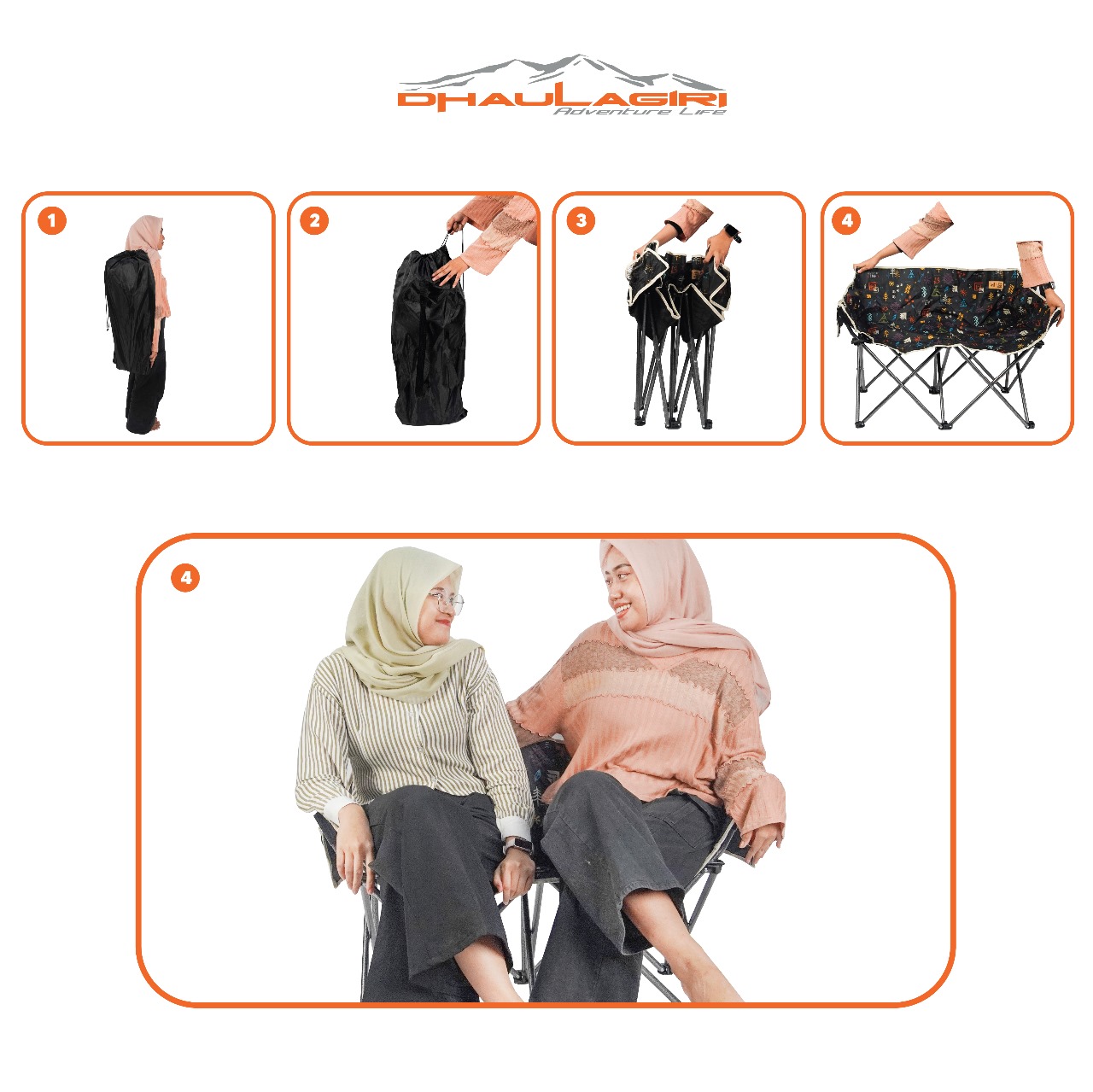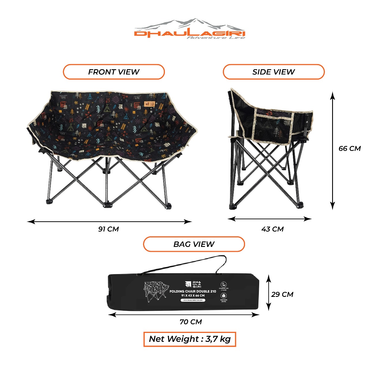 DHAULAGIRI FOLDING CHAIR DOUBLE 210 / KURSI LIPAT UNTUK 2 ORANG / KURSI SANTAI BERDUA / KURSI CAMPING KELUARGA