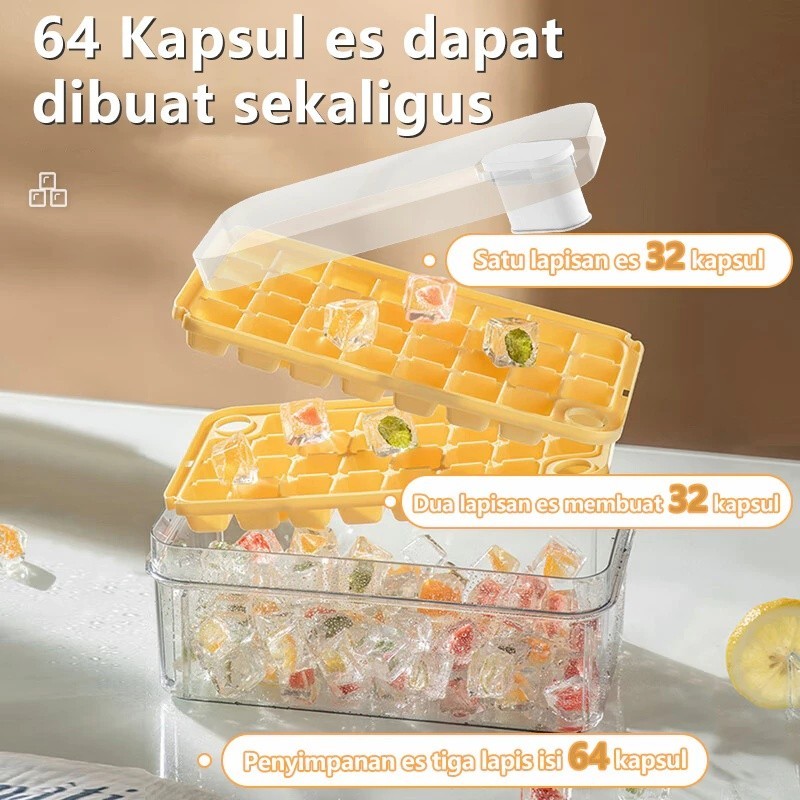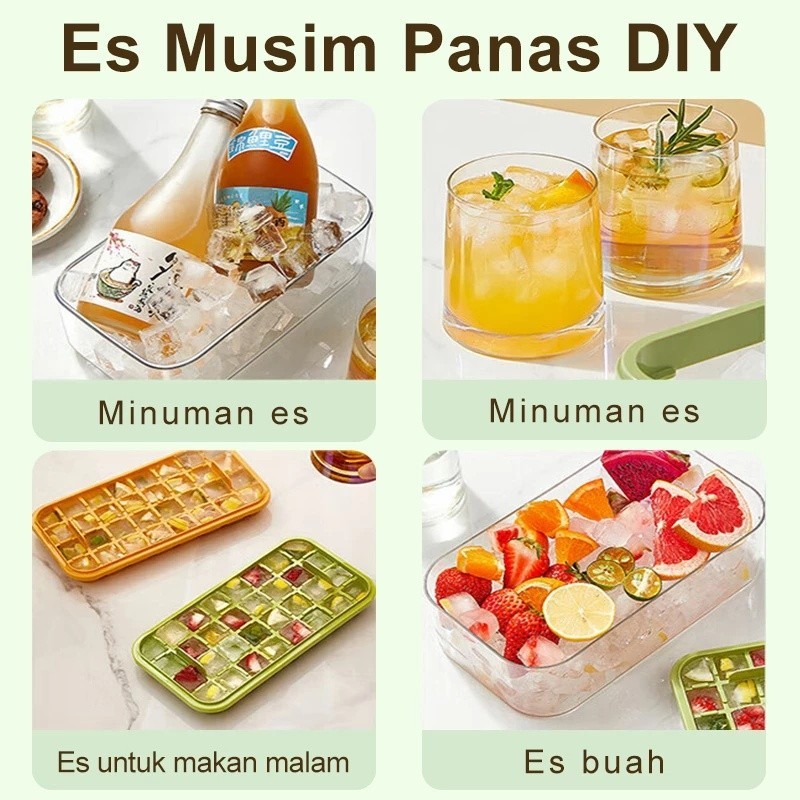 Promo Ice Cube Maker BTS / Cetakan Es Batu 32 Grid 2 Tray Wadah Transparan.