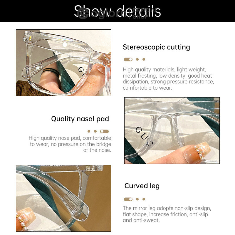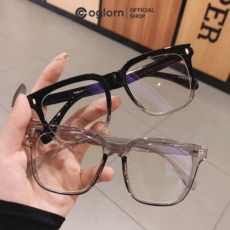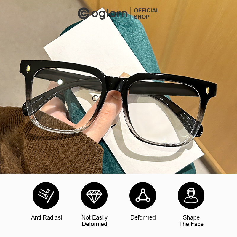 Kacamata Bingkai Persegi Vegan Datar Pria Wanita Transparan Kacamata Anti Cahaya Biru