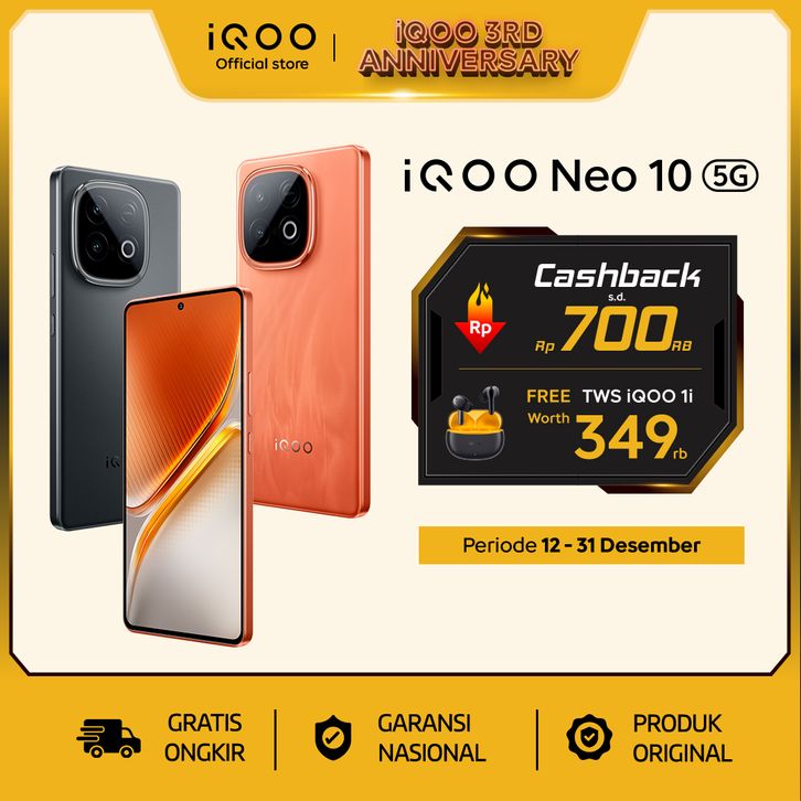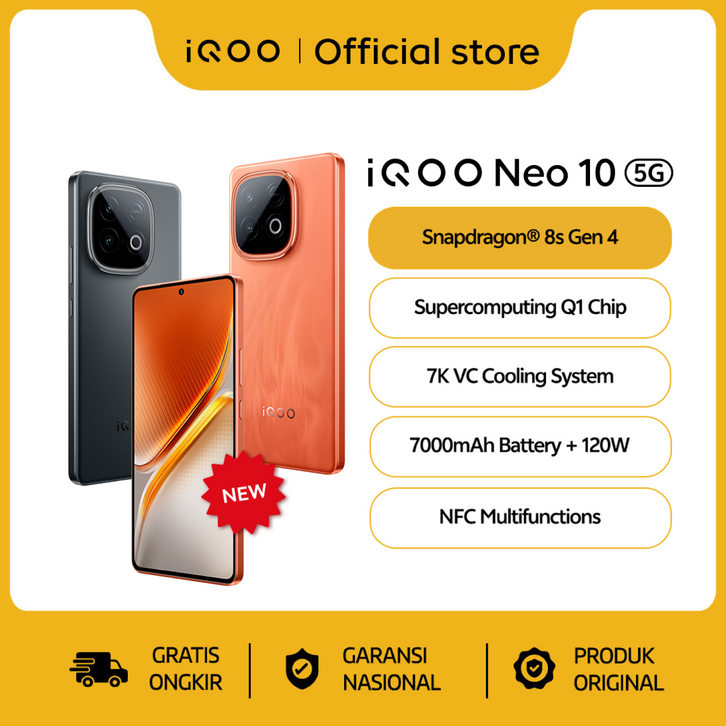 vivo iQOO Neo 10-1st Snapdragon 8s Gen 4+Q1 (Dual Chipset), 7K VC Cooling System, 7000 mAH+120 watt, 144Hz AMOLED, 50MP