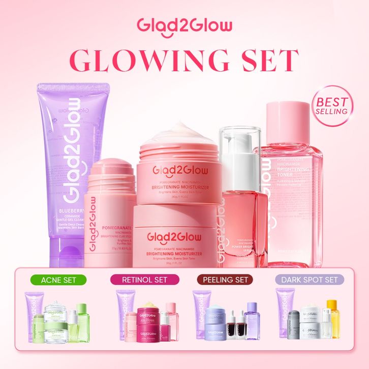 6in1 Glad2Glow 6 in 1 bundle 6pcs Paket Skincare Moisturizer Serum Clay Mask Facial Wash Toner ACNE KIT GLOWING KIT