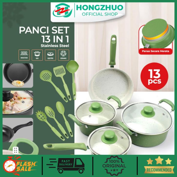 Hongzhuo Cookware Panci Set Wajan Penggorengan Spatula Set Isi 13Pcs 1 Set Frypan Saucepan