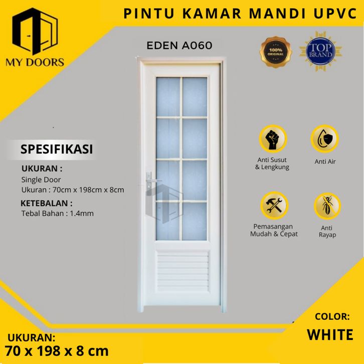 Pintu Kamar Mandi UPVC Eden 70x198 Lengkap Dengan Handle Dan Engsel