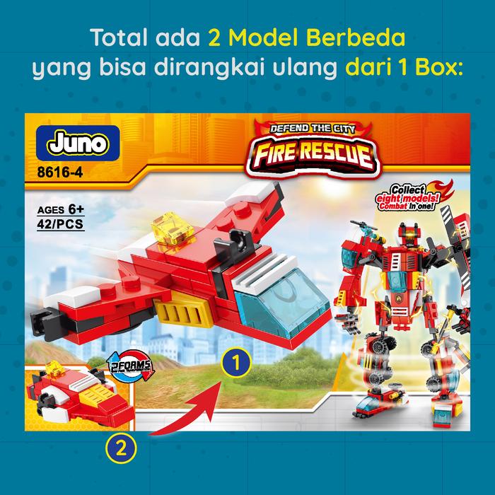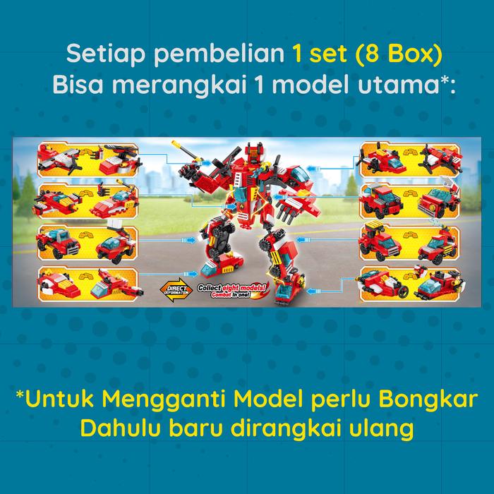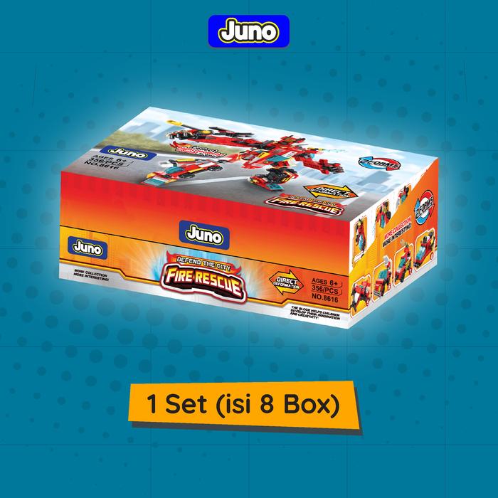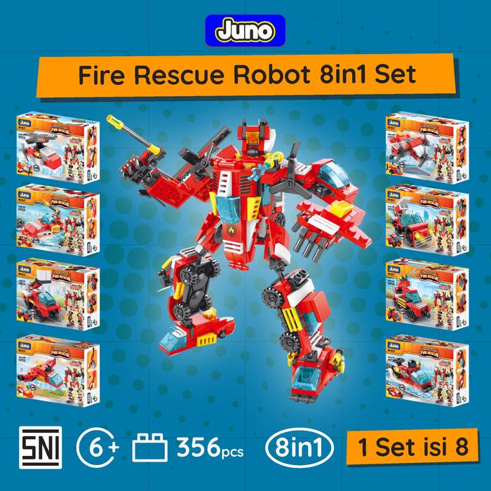 Mainan Balok Juno 8616 Fire Rescue Robot 8In1 Mainan Robot Anak Laki-Laki Umur 6 Tahun Keatas Lego Sembo Rubah - 1 Set