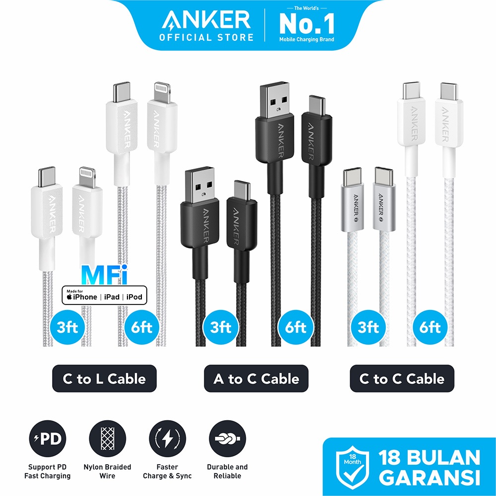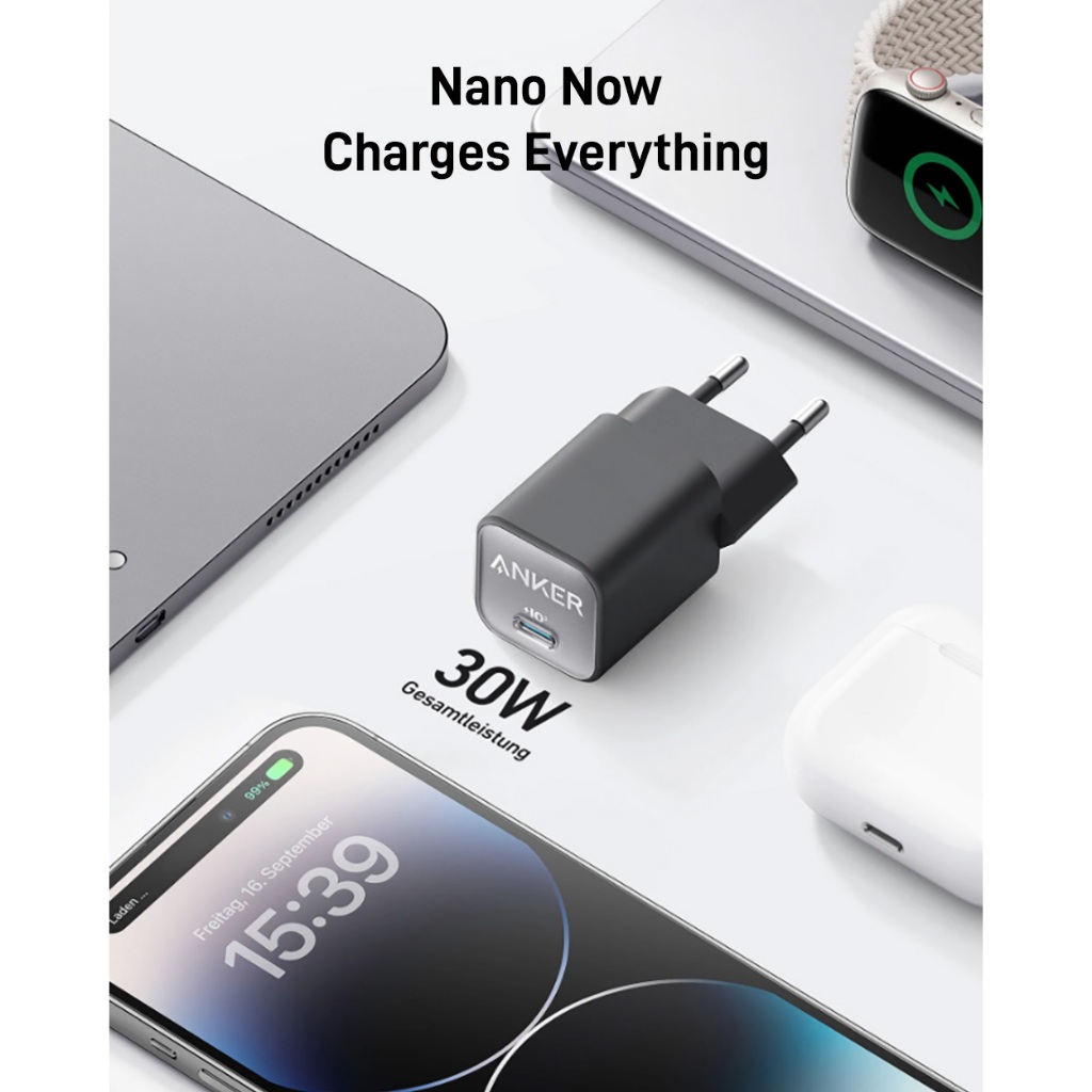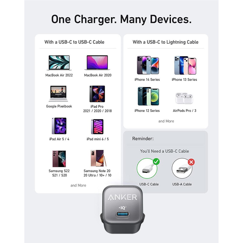 Anker Zolo Wall Charger Adaptor Kabel for iPhone 20W 30W GaN PD USB Type C Lightning MFi