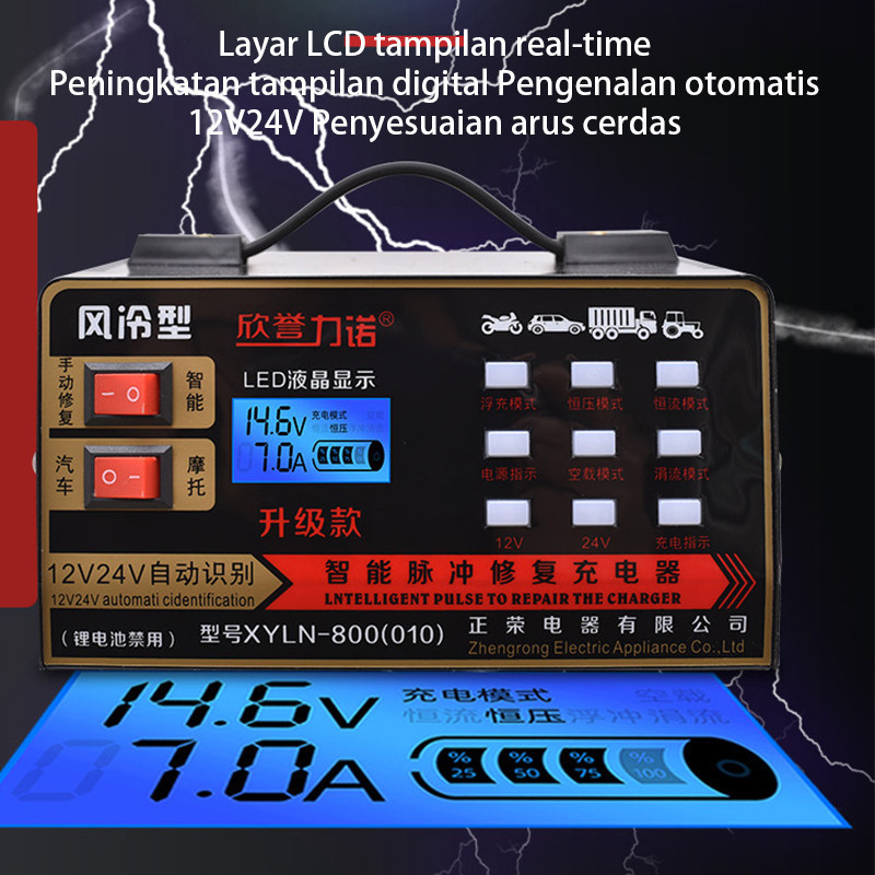 800A Charger Aki Mobil Motor 12V-24V Charger Aki Otomatis Smart Intelligent Auto Repair Mobil Truk Pengisi Daya Perbaika