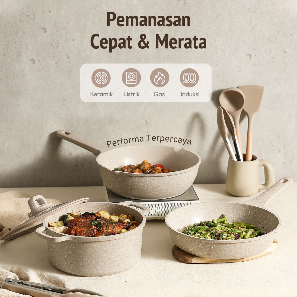 Panci 1 Set Lengkap Carote 7 Pcs Lapisan Granit Anti Lengket Penggorengan Free PFOA