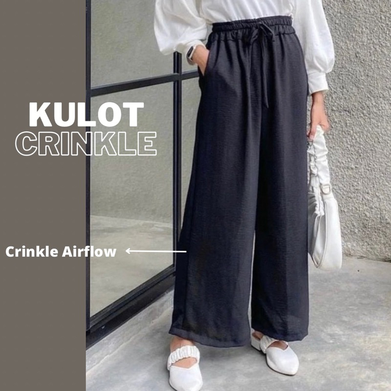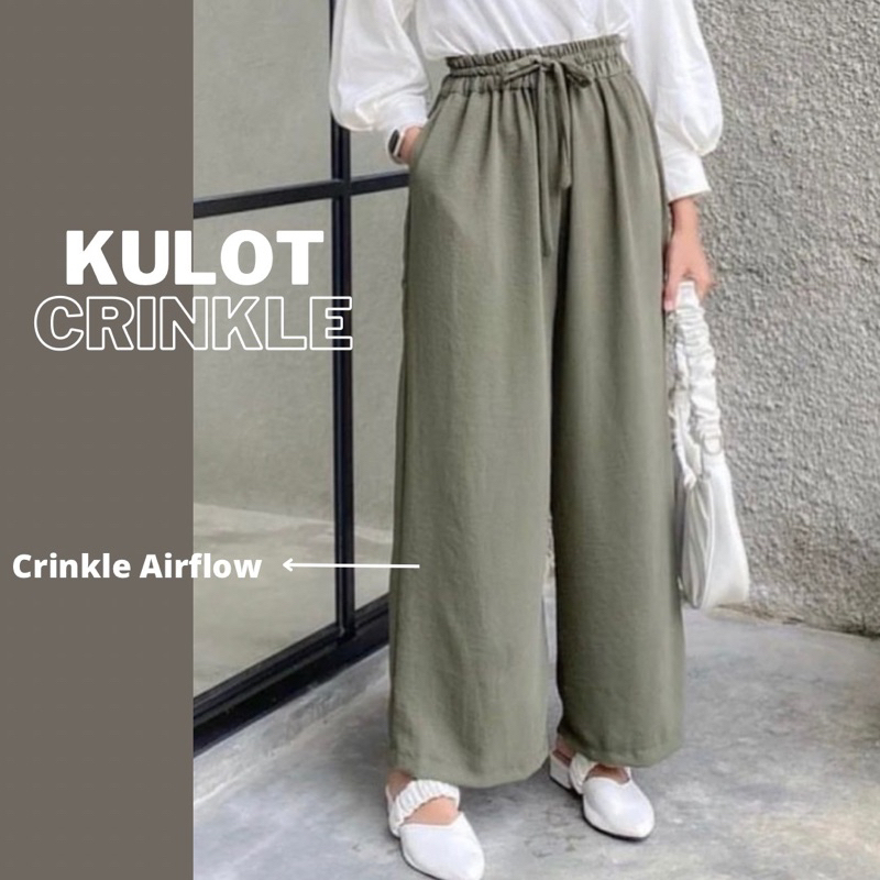 Kulot Crinkle Tali Premium Jumbo XXL Muat BB 90 Celana Kulot Crinkle Airflow Celana Wanita Highwaist Variasi Tali Serut