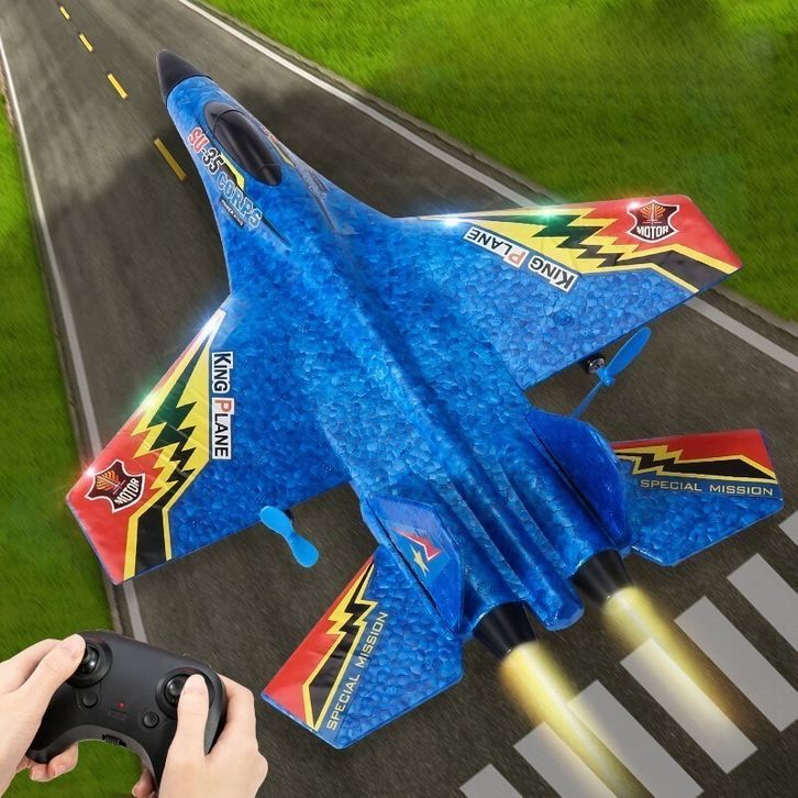 KiKiTOY Mainan Pesawat Remote Control Pesawat Terbang RC Lampu LED Pesawat Tempur Airplane SU35
