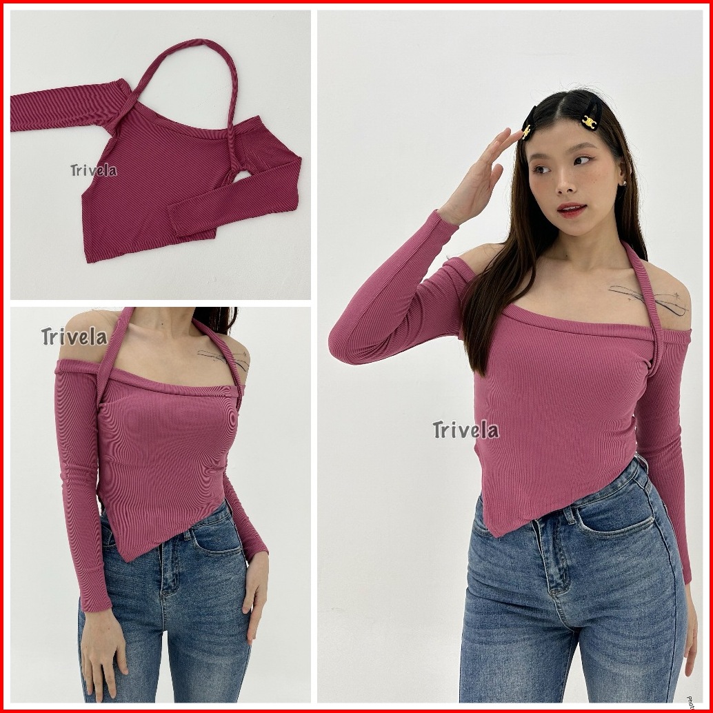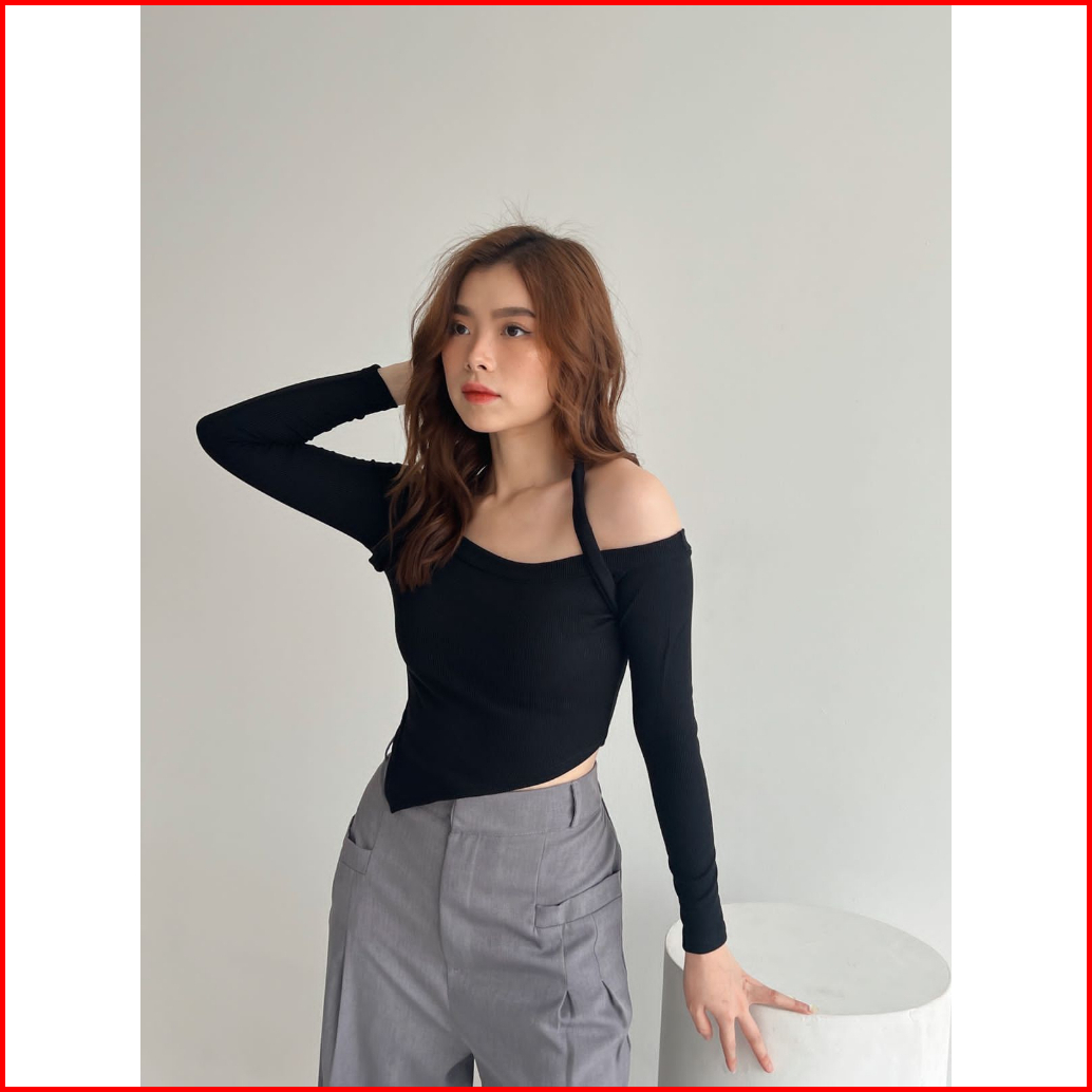 Floryn Halter Neck Two Ways Crop Baju Wanita Knit Korean 002 Floryn Nkd