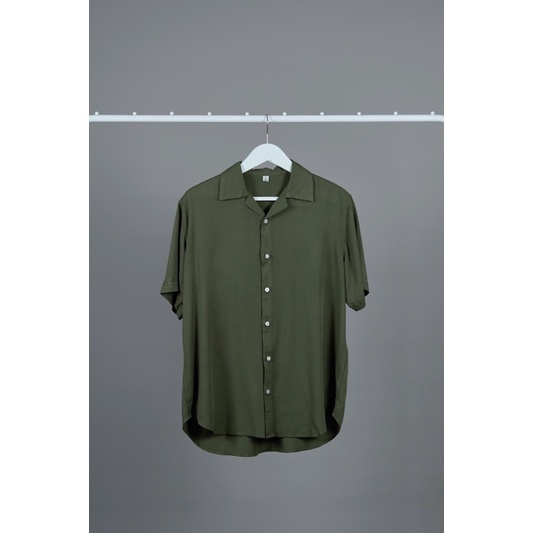 (Gratis Ongkir) Basic Colour Shirt | Kemeja Pria Polos Retro V Neck Lengan Pendek Kasual Pria Wanita