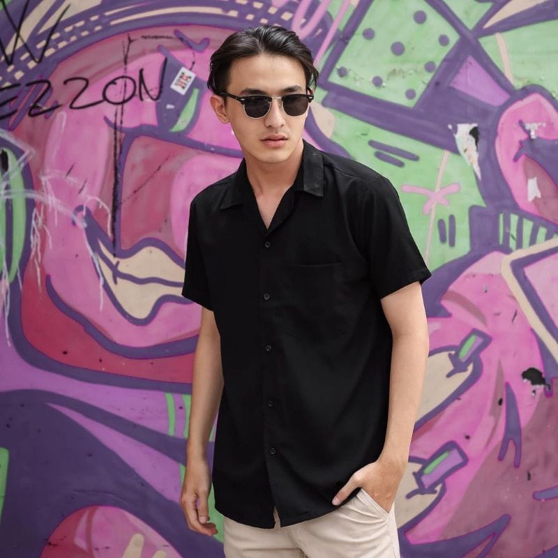 (Gratis Ongkir) Basic Colour Shirt | Kemeja Pria Polos Retro V Neck Lengan Pendek Kasual Pria Wanita