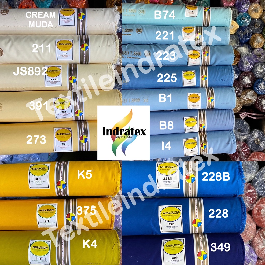 CREAM MUDA, krem 211, krem JS892, krem 391, krem 273, kuning 271, kuning K5, kuning 375, kuning K4, hijau I90, hijau 291, hijau 288, hijau I73, hijau 293, hijau 252, hijau 253, hijau 258, hijau I56, hijau 296, hijau I36, hitam 410, orange 381, orange 002, ungu 351, ungu 355, ungu 356, abu A3, abu 444, abu 237, pramuka 213, pramuka C77, pramuka214 CREAM TUA, pramuka 215, pramuka T52, pramuka 216, pramuka 333, pramuka JS916, pramuka 320, biru B74, biru 221, biru 223, biru 225, biru B1, biru B8, biru I4, biru 228 B, biru 228, biru 349, pink 321, WARNA LAINNYA