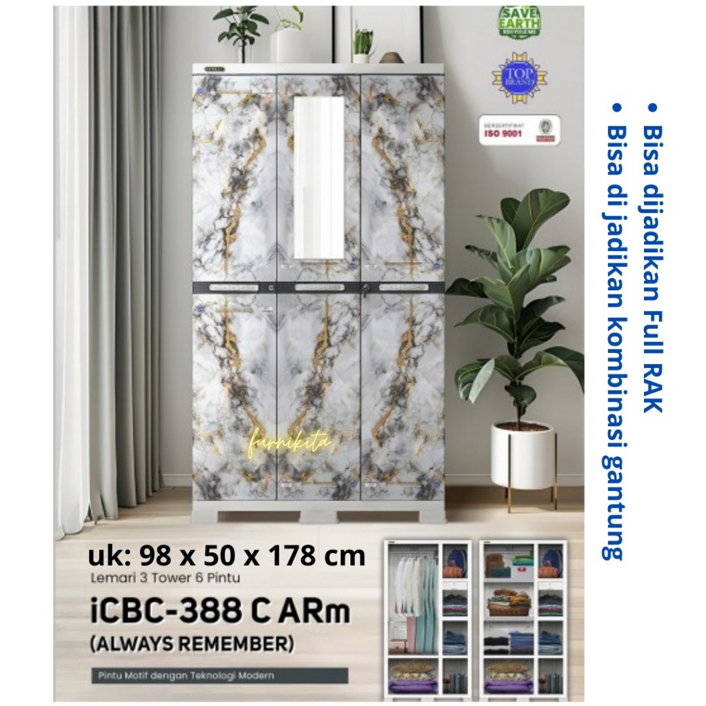 PROMO JUMBO - LEMARI PAKAIAN PLASTIK NAPOLLY 3 PINTU KACA GANTUNG RAK ICB 388 ION