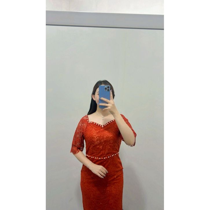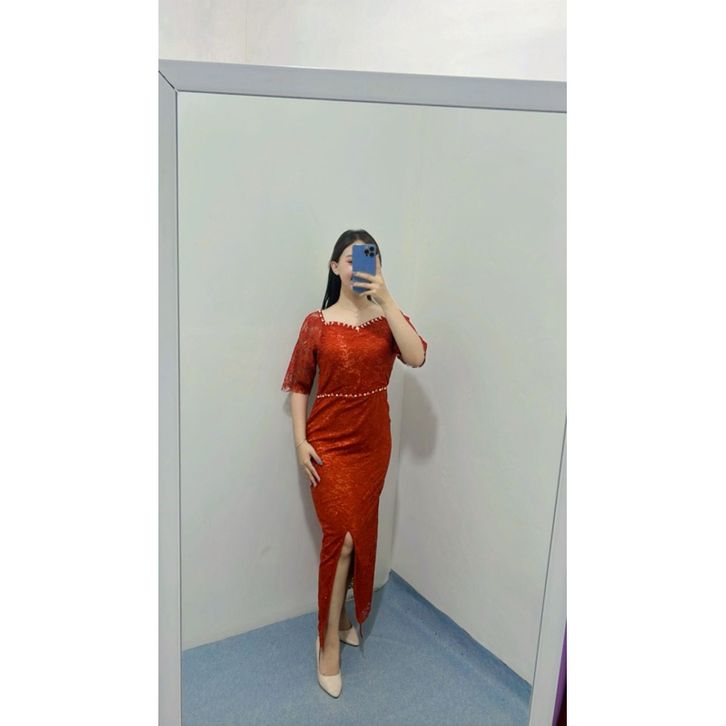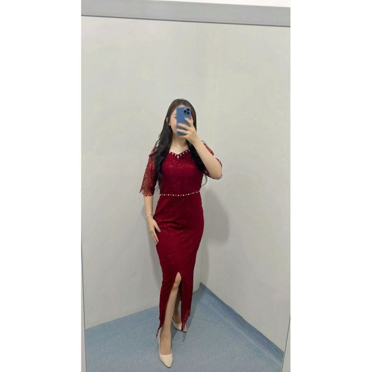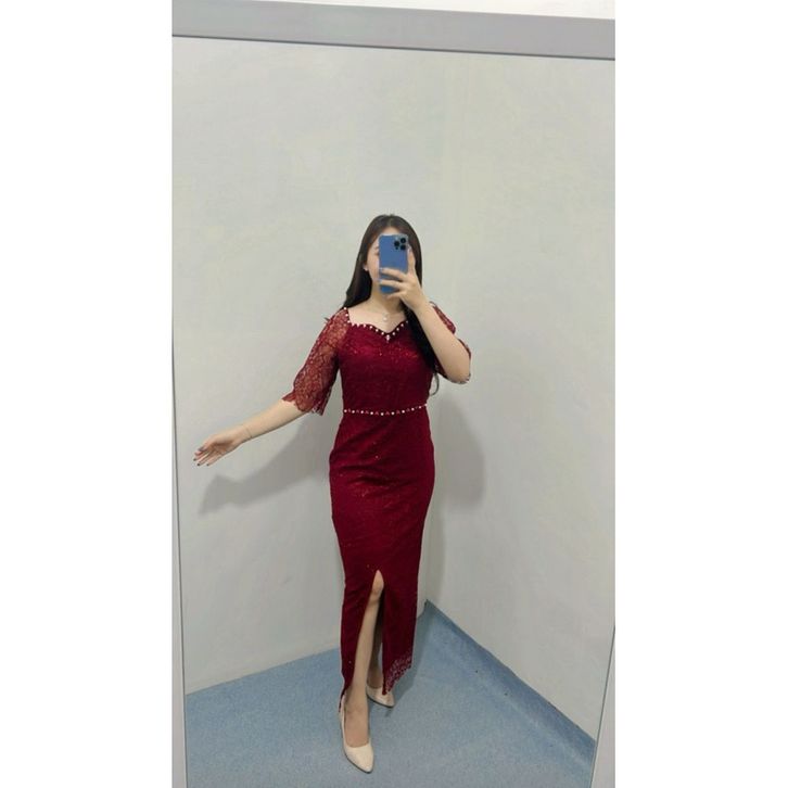 dress brukat feli dress brukat wanita dress natal 2025 gaun pesta kekinian dress kondangan modern