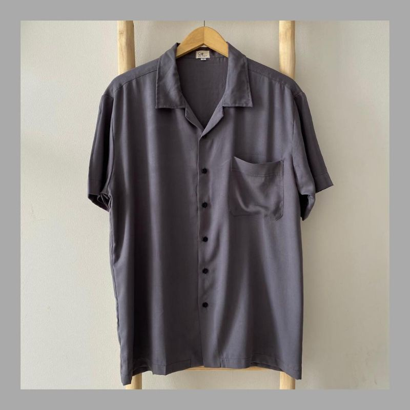 (Gratis Ongkir) Basic Colour Shirt | Kemeja Pria Polos Retro V Neck Lengan Pendek Kasual Pria Wanita