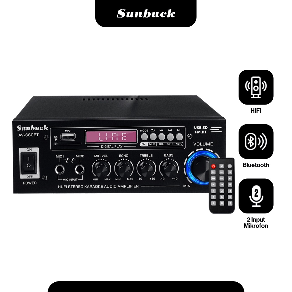 AMPLIFIER BLUETOOTH SUBWOOFER / SUNBUCK AUDIO BLUETOOTH 5.0 DAC AMPLIFIER 2 CH REMOTE 2000W - AV-660BT