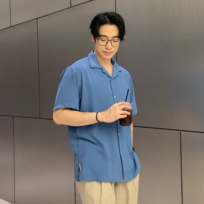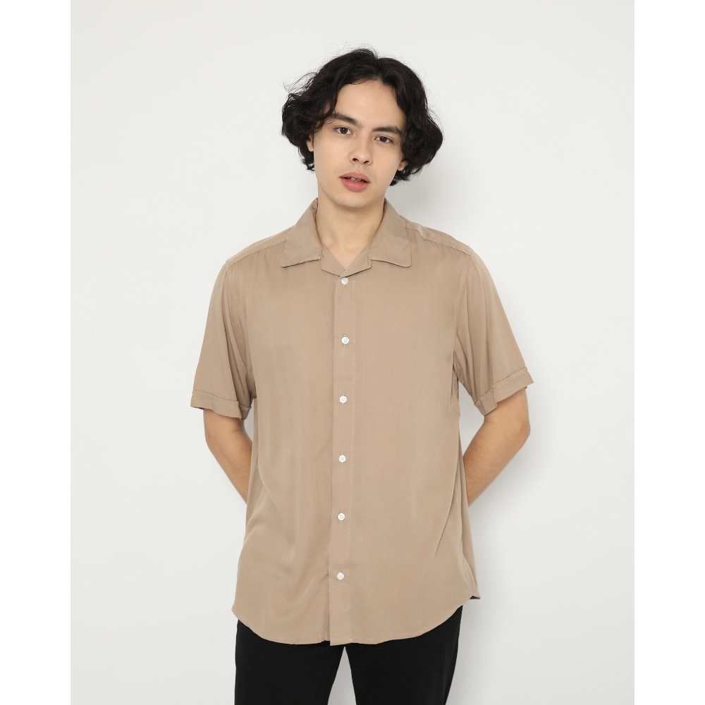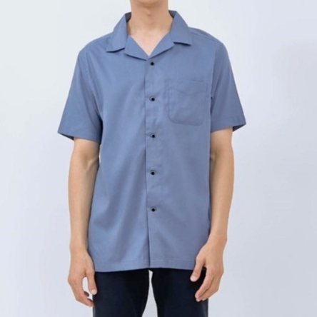 (Gratis Ongkir) Basic Colour Shirt | Kemeja Pria Polos Retro V Neck Lengan Pendek Kasual Pria Wanita