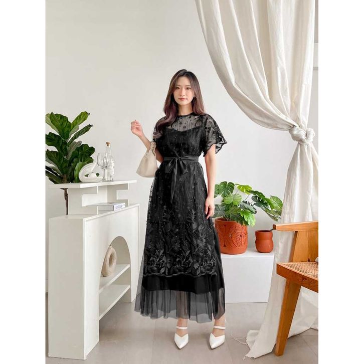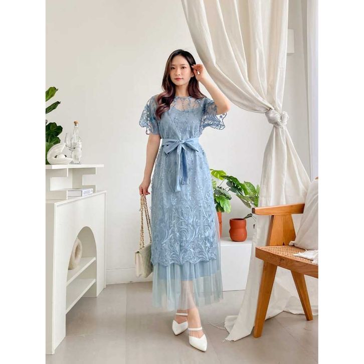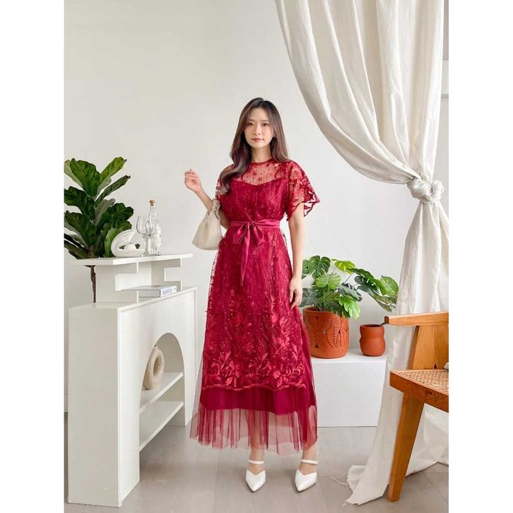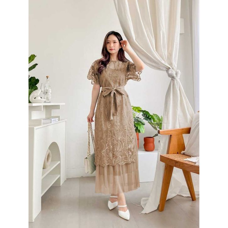 realpic dress fransisca 2in1 fashion pakaian wanita 3 ukuran m l dan xl inner tile polos lapis velvet dan outer brukat