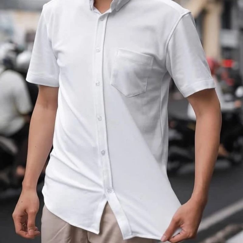 (Gratis Ongkir) Kemeja Putih Pria Lengan Pendek Polos Premium Distro Kasual Kerja Warna White M L XL