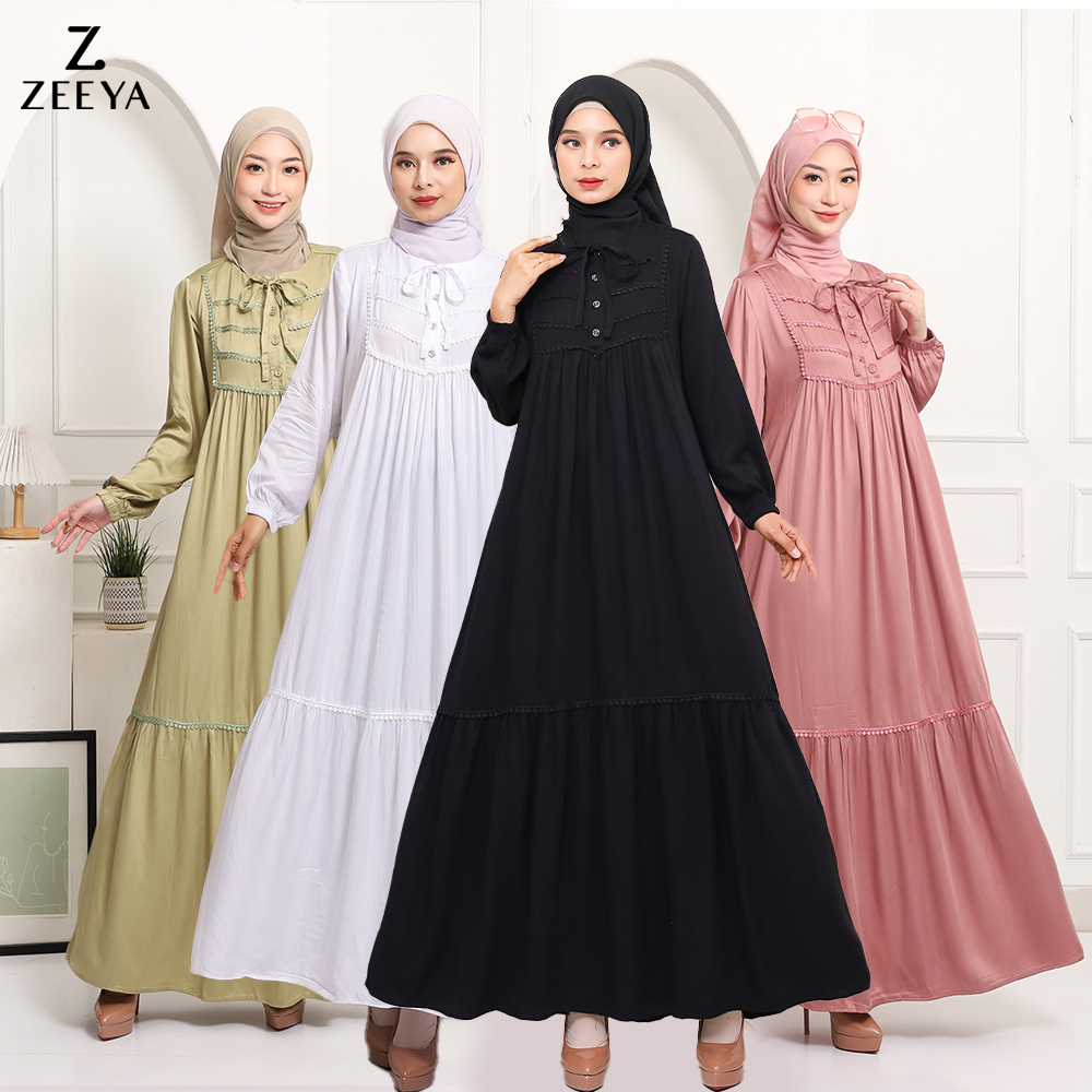 Zeeya Collection Zoya Gamis Dress Umroh HItam Polos Rayon Twill Busui Friendly Size M L XL
