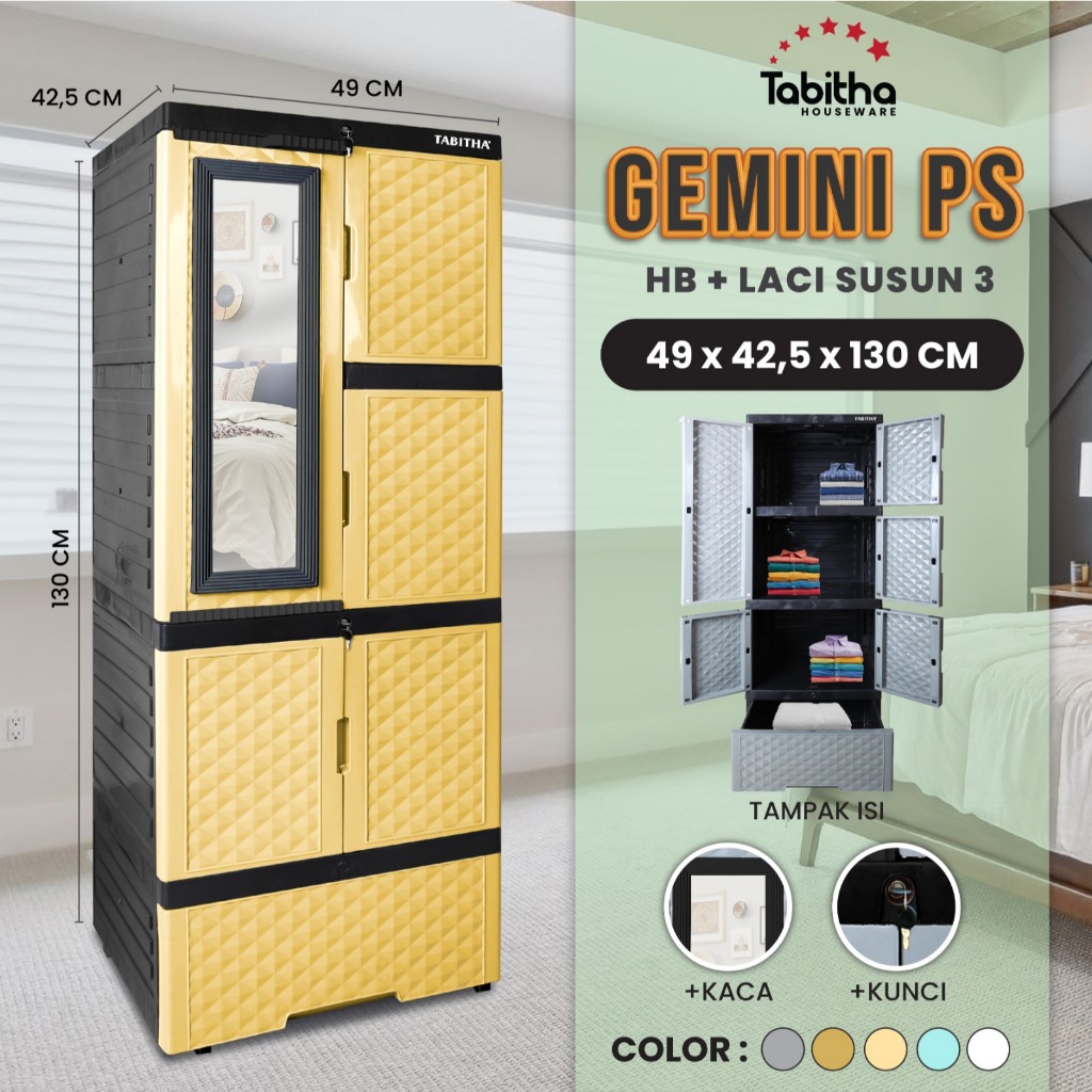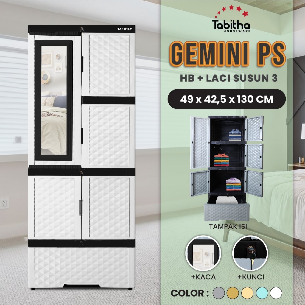 PROMO LEMARI PAKAIAN PLASTIK TABITHA GEMINI KACA KUNCI GANTUNG DAN HAMBAL