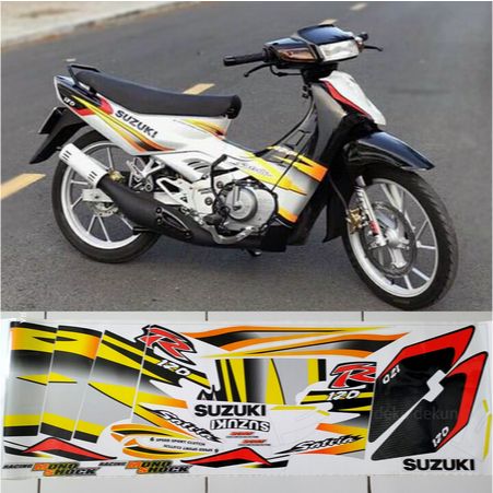Striping Satria Lumba 2Tak Variasi Kuning Putih Stiker Tahan Vernis Laminasi Cuting
