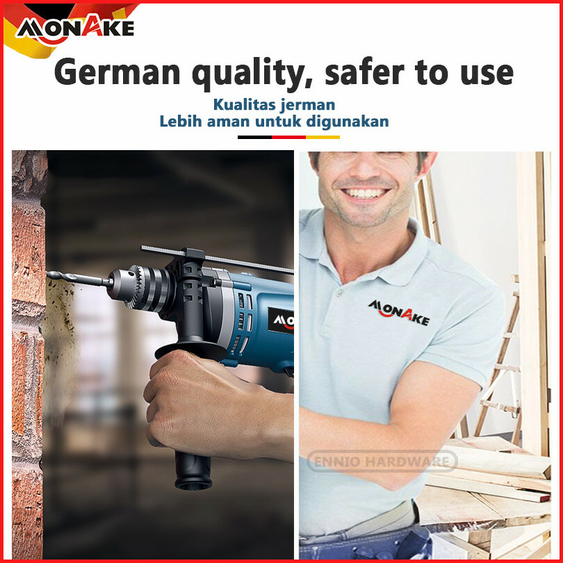 German Tools Mesin Bor 13mm Impact Drill Tangan Listrik Electric Drill Koper Set Besi Bor Beton Kayu Tembok Putaran Bola