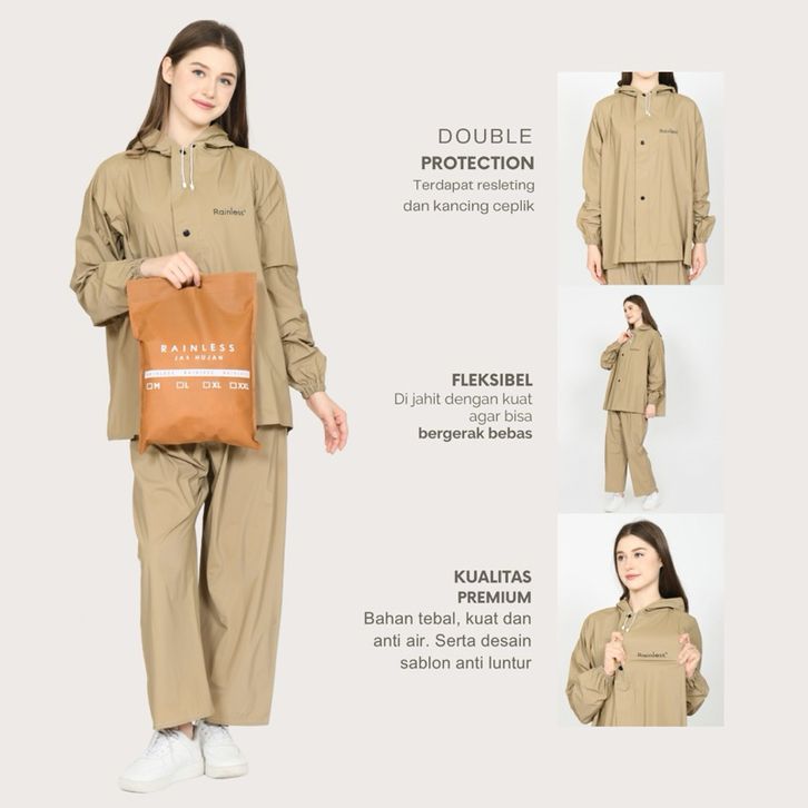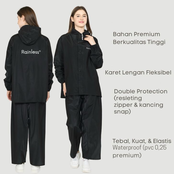 BARU Rainless Jas Hujan Stelan Jaket Celana Bahan Pvc Premium Pria dan Wanita Dewasa egokd