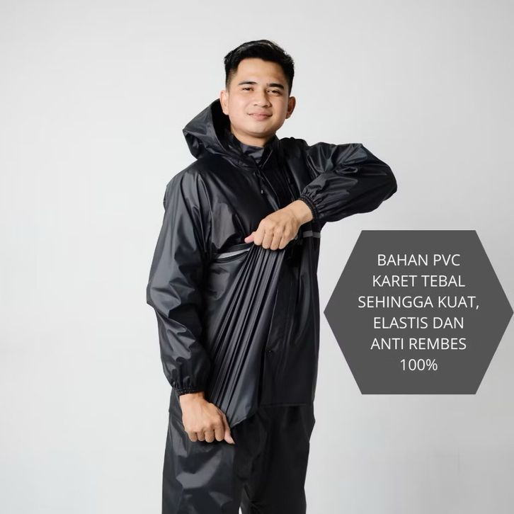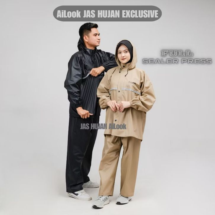MURAH AILOOK Jas Hujan Raincoat Full Seal Press Anti Rembes Pria Wanita Bahan PVC Karet Tebal Kuat Elastis efocs
