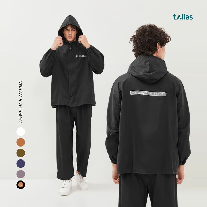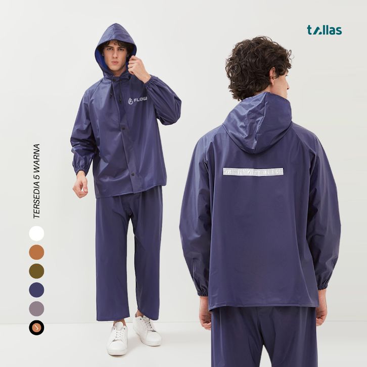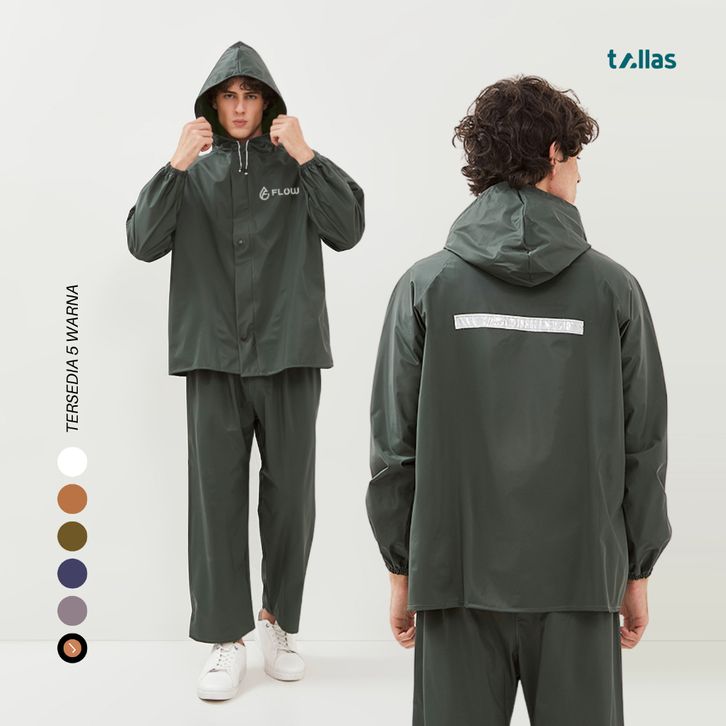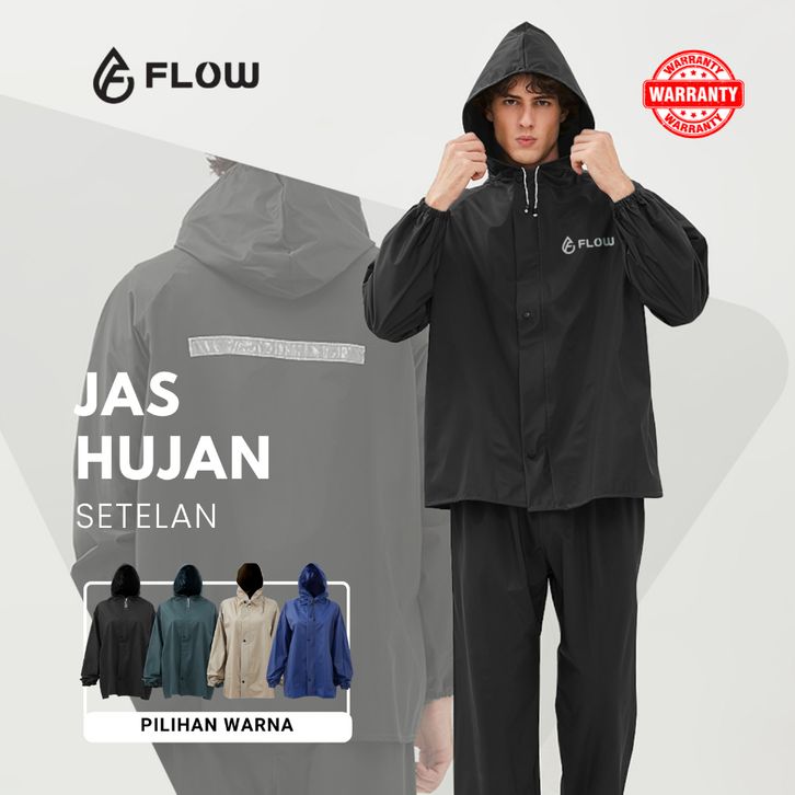 EKSKLUSIF Jas Hujan Pria Wanita Setelan Mantel Hujan Dewasa PVC Elastis Anti Rembes By Flow ugemnk