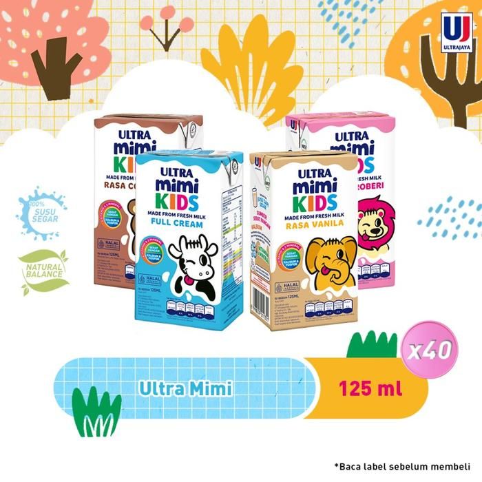 Susu Ultra Mimi UHT per dus isi 40 pcs - fullcream/cklt/strober/vanila - Full Cream
