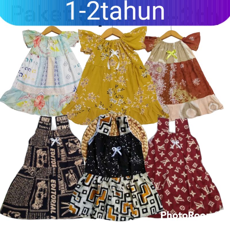 DRESS PERCA 1-2TH GROSIR BAJU ANAK MURAH HARIAN KUTUNG SANTAI RAYON DASTER