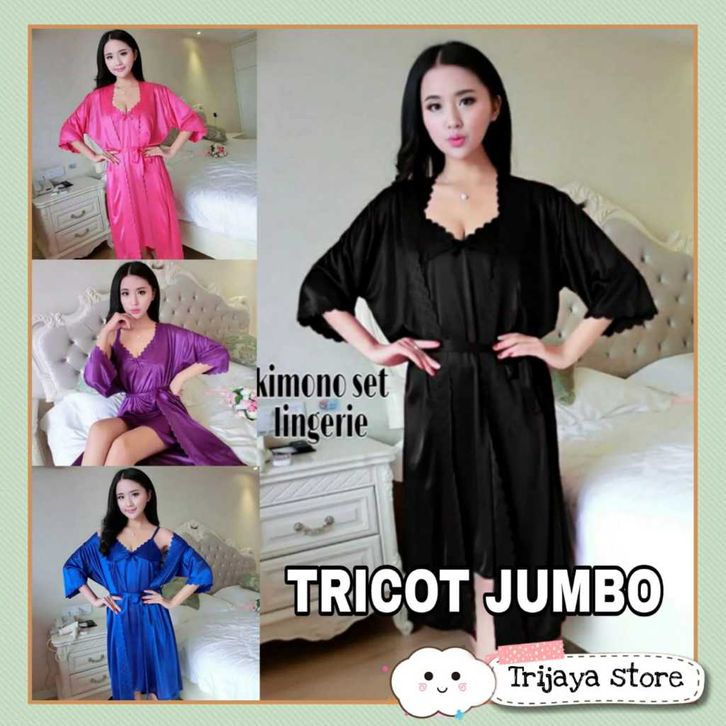 Trijaya . kimono wanita set tricot JUMBO XXL import / piyama set kimono lingerie 2in1 satin import KD.142/XXXL