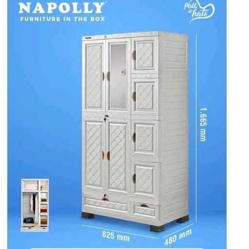 PROMO LEMARI PLASTIK 3 PINTU NAPOLLY MIDICAB GANTUNG CERMIN
