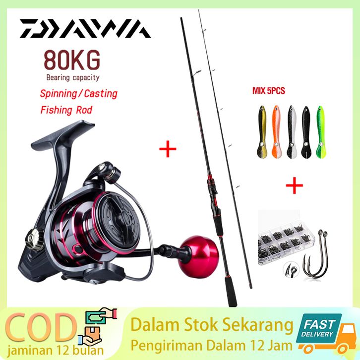 DAIWA Joran Pancing Set 1.8M-2.7M 2 Bagian Reel Gulungan 13BB 5.2:1 Set Lengkap untuk Memancing