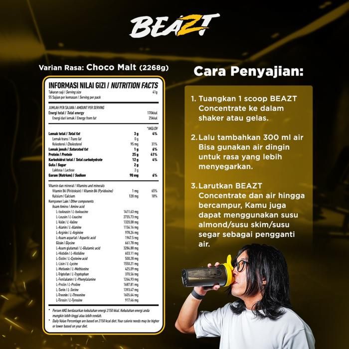 FITLIFE Beazt 5 lbs Whey Protein Concentrate - Suplemen Fitness Tinggi Protein - Choco Malt TANPA BONUS