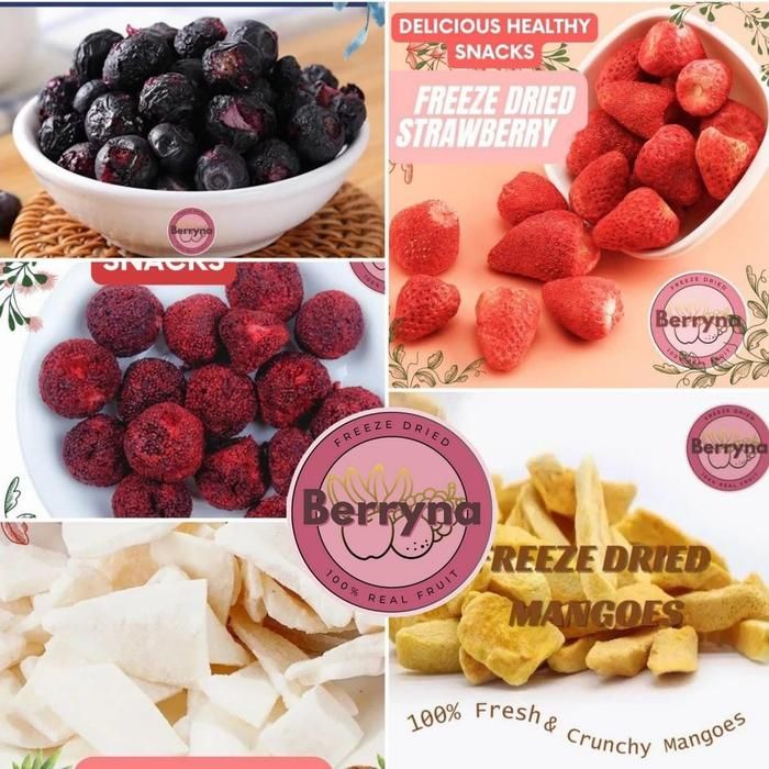 Berryna Strawberry kering Freeze Dried 50g/30g snacks Food Cemilan stroberi kering buah kering Camilan Fruit freeze dri
