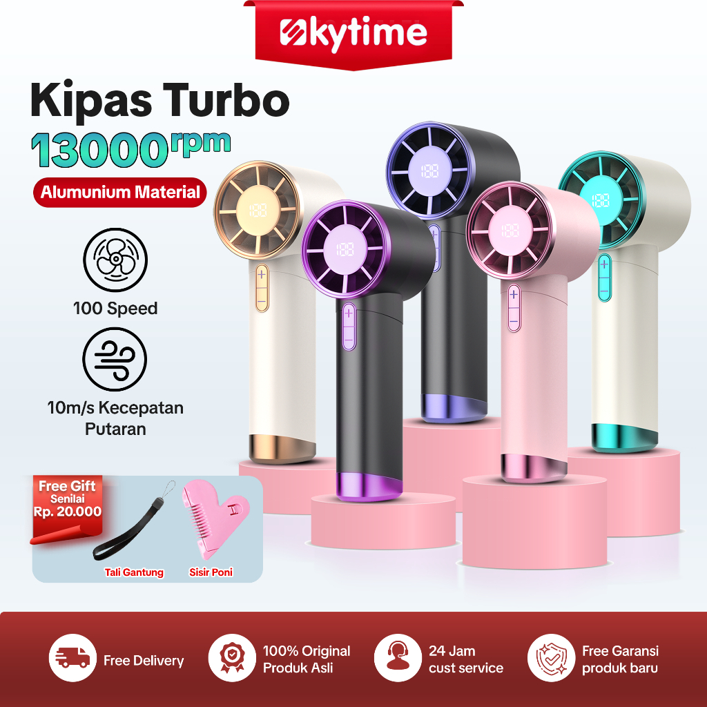 Skytime Strong Wind 100 Gear Wind High Speed Kipas angin portable mini tahan lama Digital LED Display Adjustable kipas t