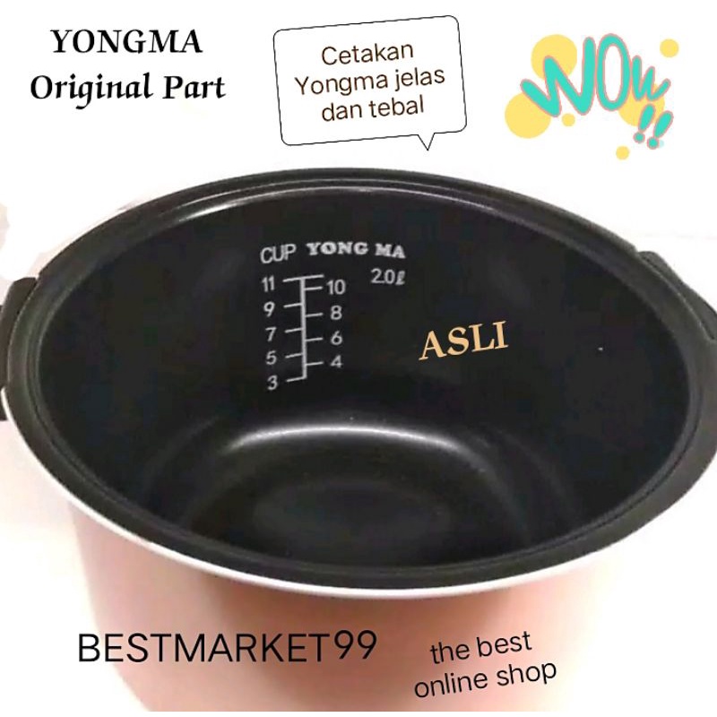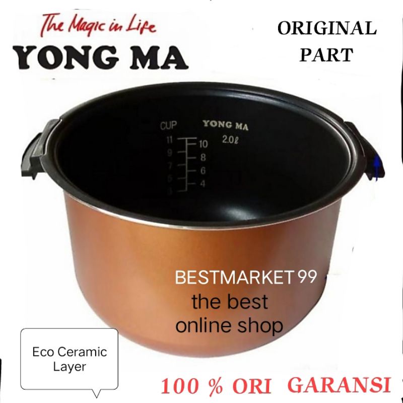 PANCI YONGMA ECO CERAMIC INNER POT MAGIC COM YONG MA 2 LITER WING/ NON WING YONGMA Free Paking Karton Tebal & Buble Wrap