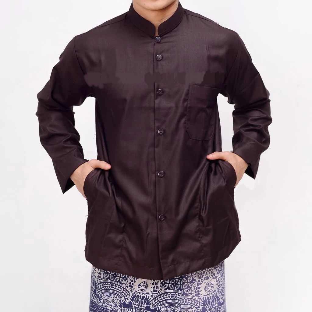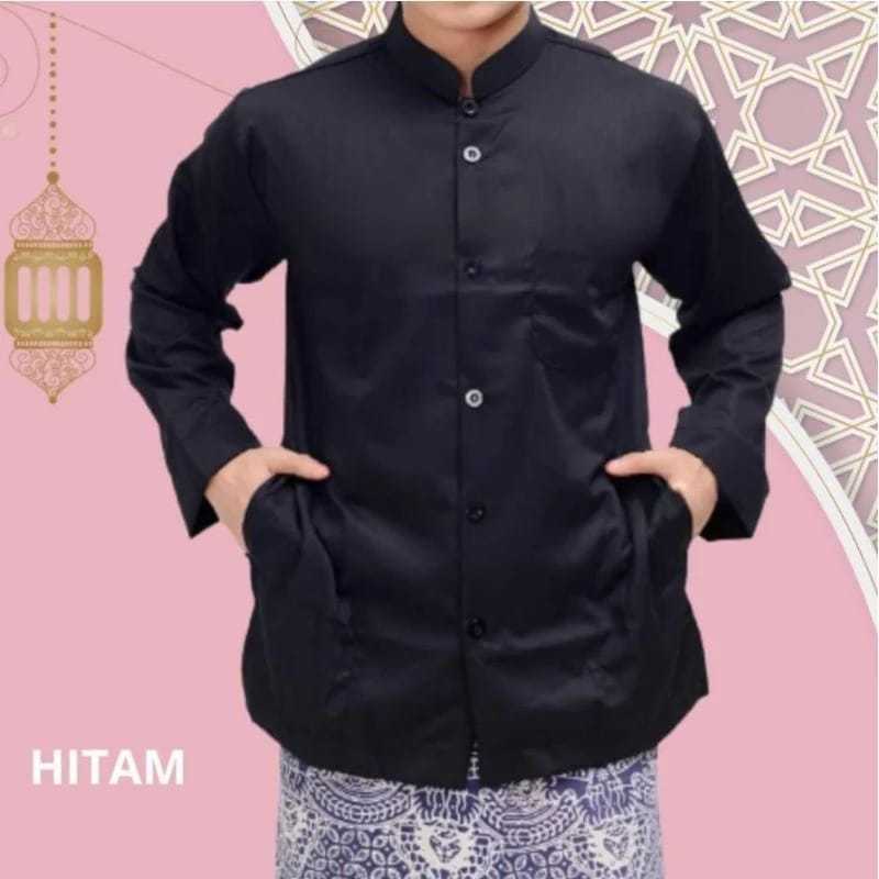 Baju Koko Pria Dewasa Muslim Lengan Panjang Putih Haibah Saku samping